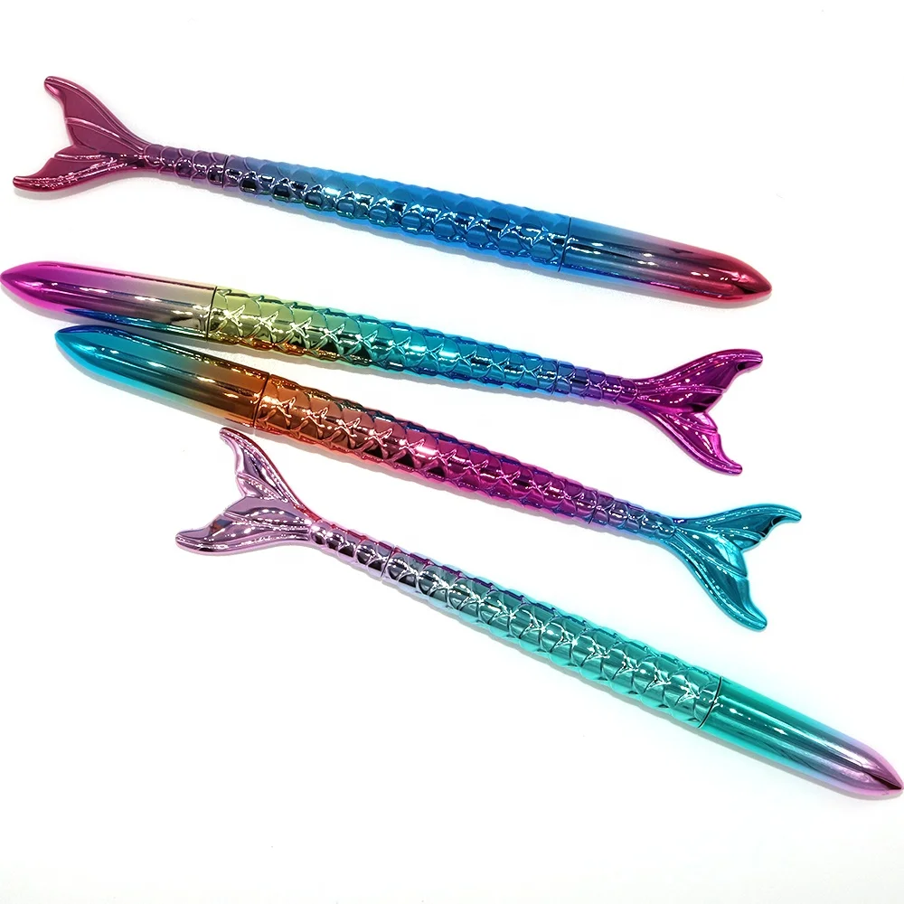 Colorful Shiny Fish Tail Office Stationery Gift Pen Rainbow Color Body Cartoon Mermaid Tail Gel Ink Pen for Kids