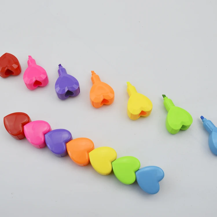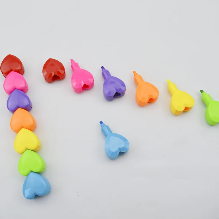 Promotional School Kids Rainbow Coloured Heart Shape Sets Portable Flat Highlighter Pen