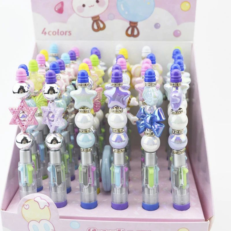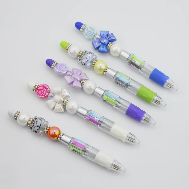 DIY Cartoon Ballpoint Pen, Four-Color Bead Pen, Cute Multi-Color Creative Pen