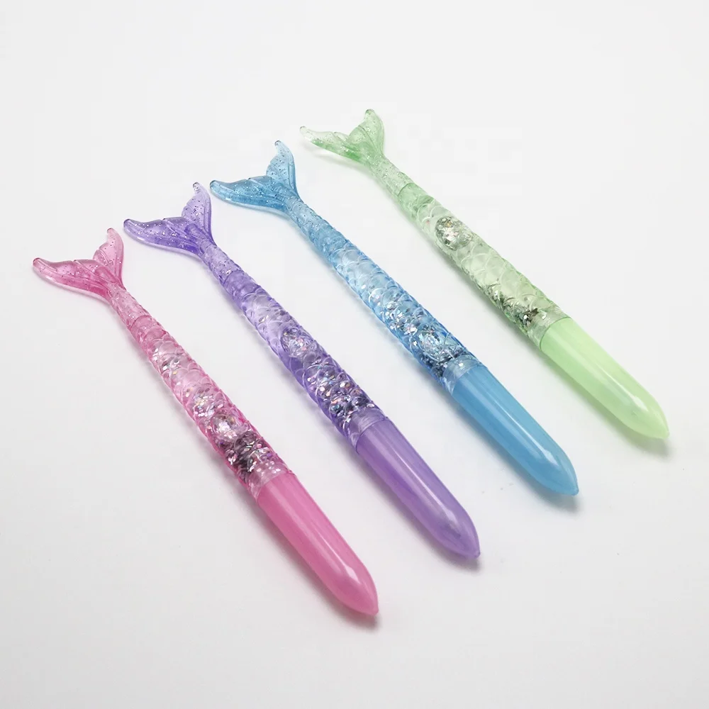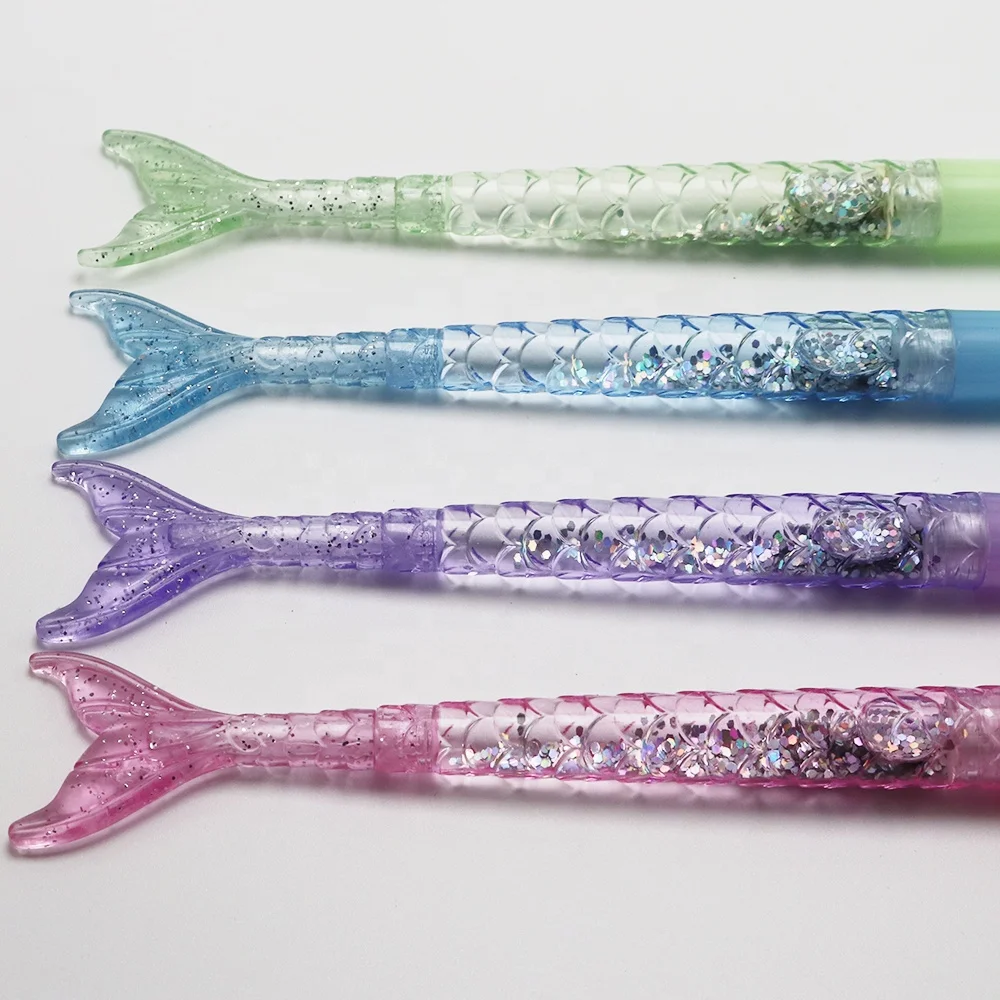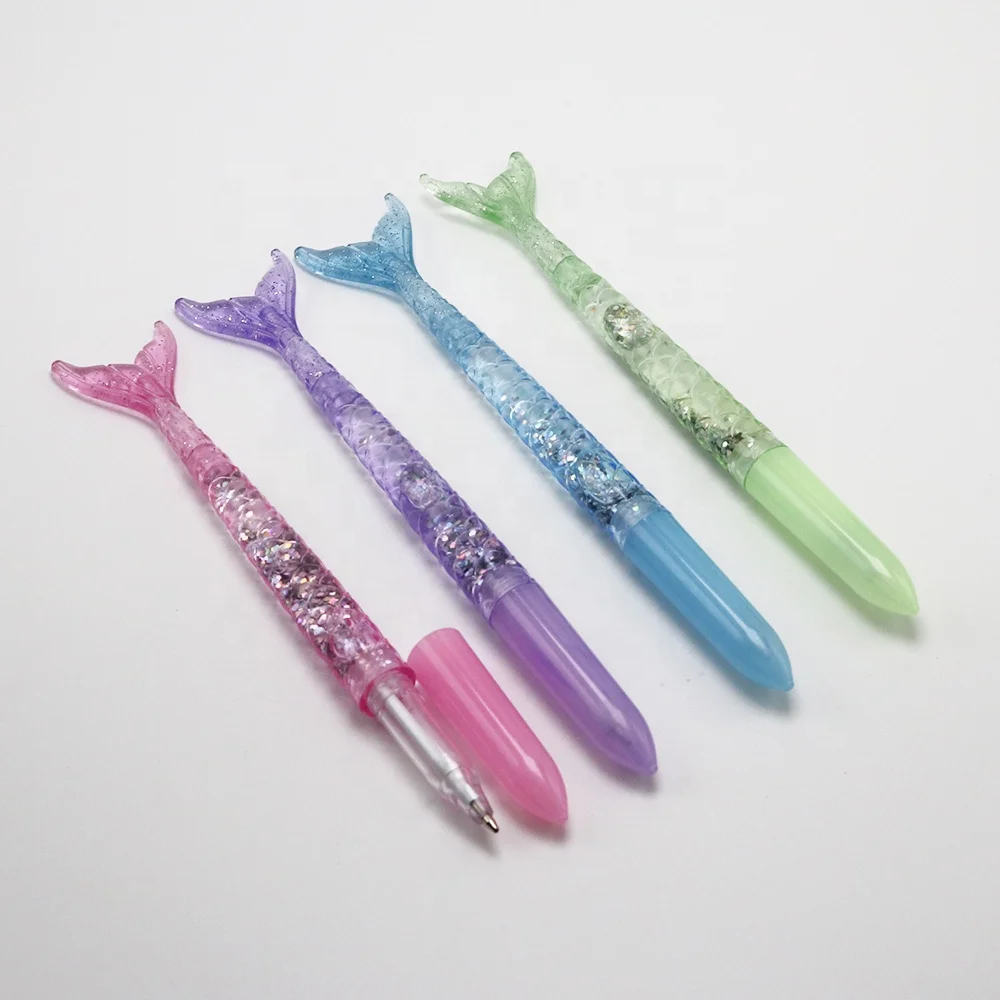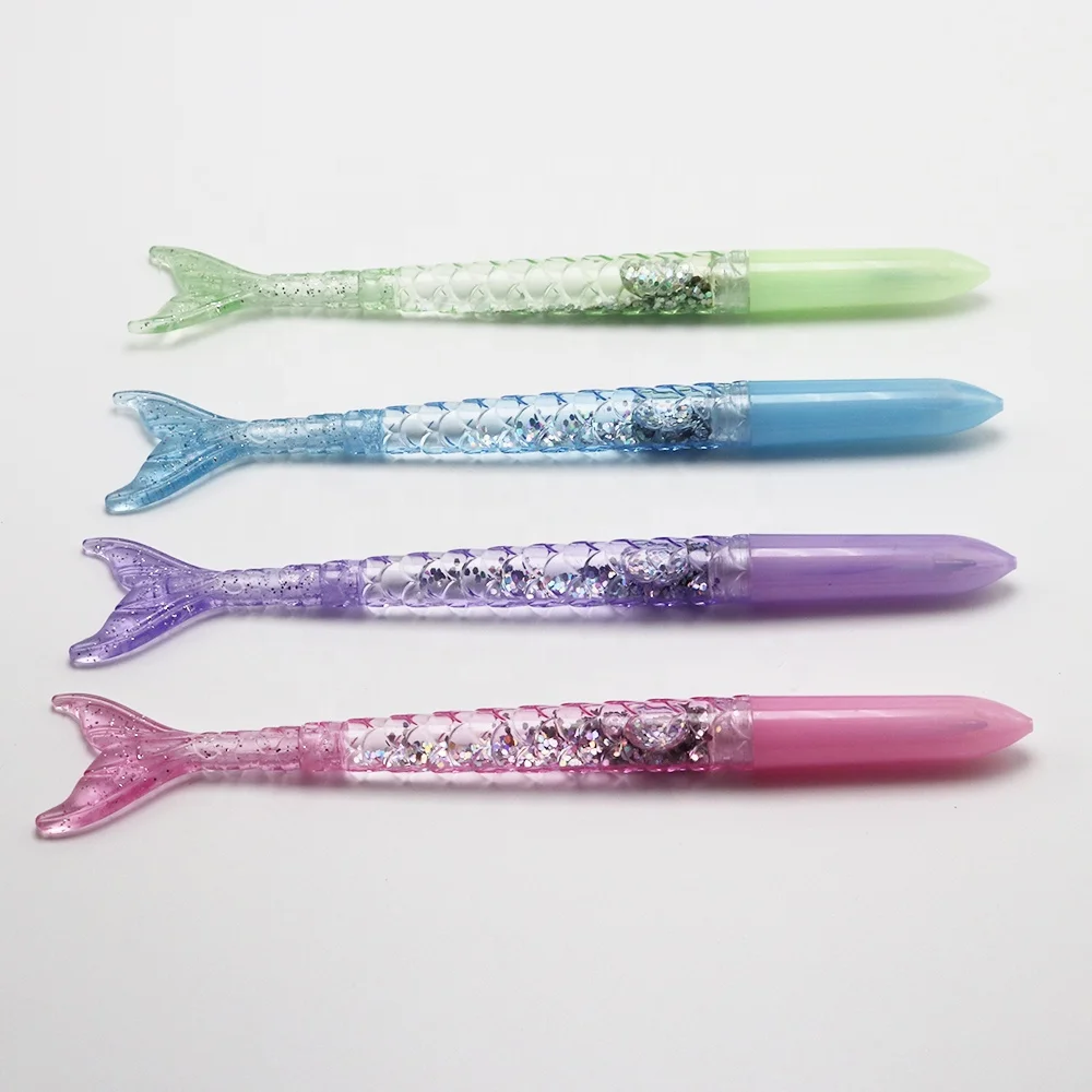 Hot Selling Novelty Creative Mermaid Shaped Kawaii Plastic Ball Pen with Silver Glitter Inject for School Office Promotional