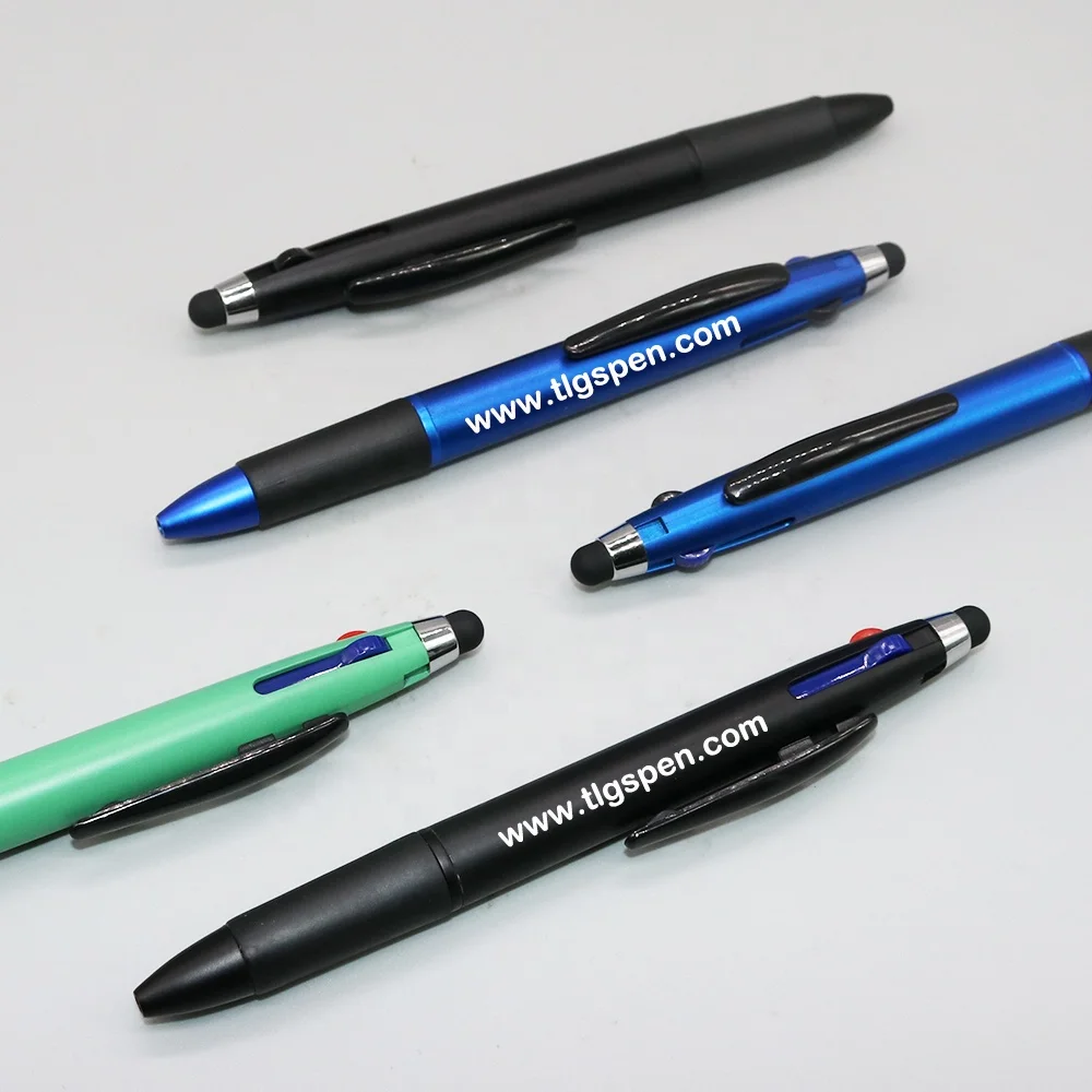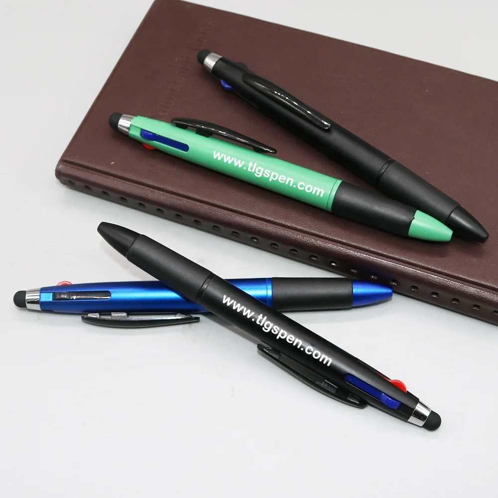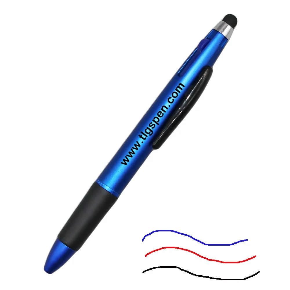 Colorful Promotional Plastic 3 Color Pen Custom logo Multicolor Stylus Touch Screen Ballpoint Pen