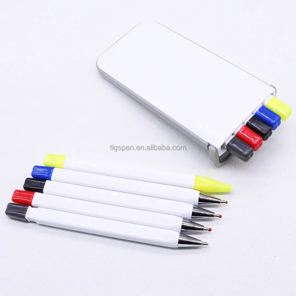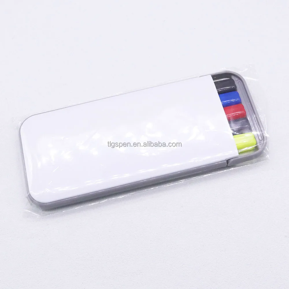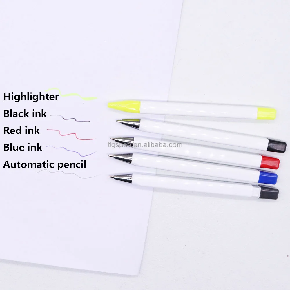 Pen Set in a Box with Blue Black Red Ballpoint Pen and Pencil Highlighter Pen Multi-function in 1 Gift Pencil Case Set