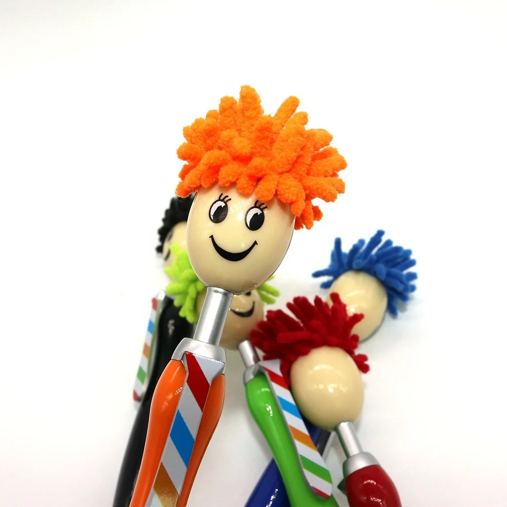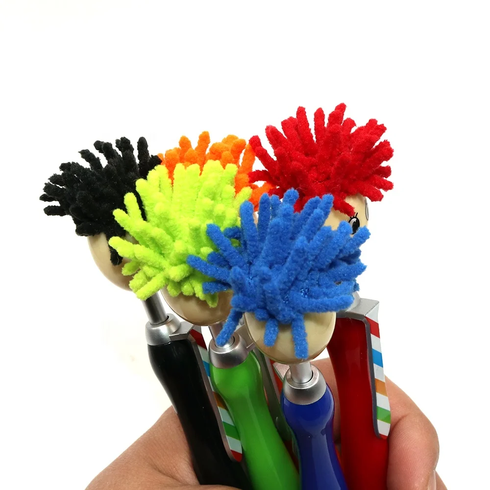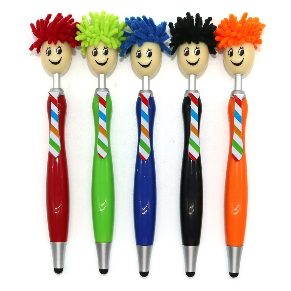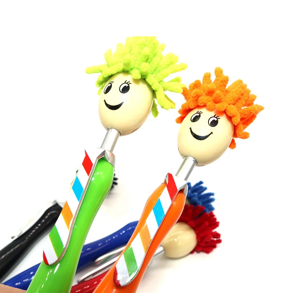 Promotional Novelty Plastic 2 in 1 Ball Pen Stylus Cute Doll Head Ball Pen with Custom logo