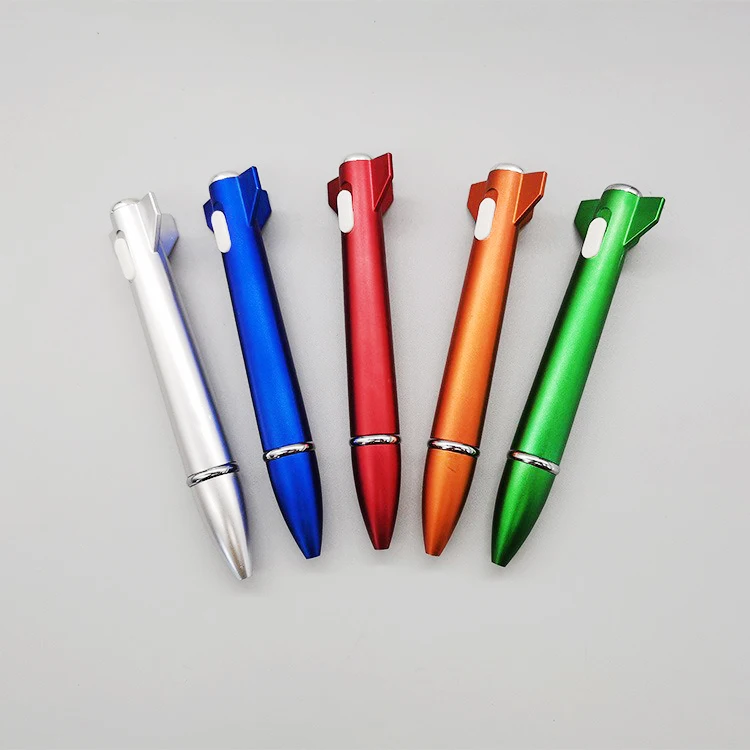 Hot Selling Novelty Advertising LED Ballpoint Pen Custom Logo Durable Plastic Body 1.0mm Sports Model Funny Missile Rocket Style