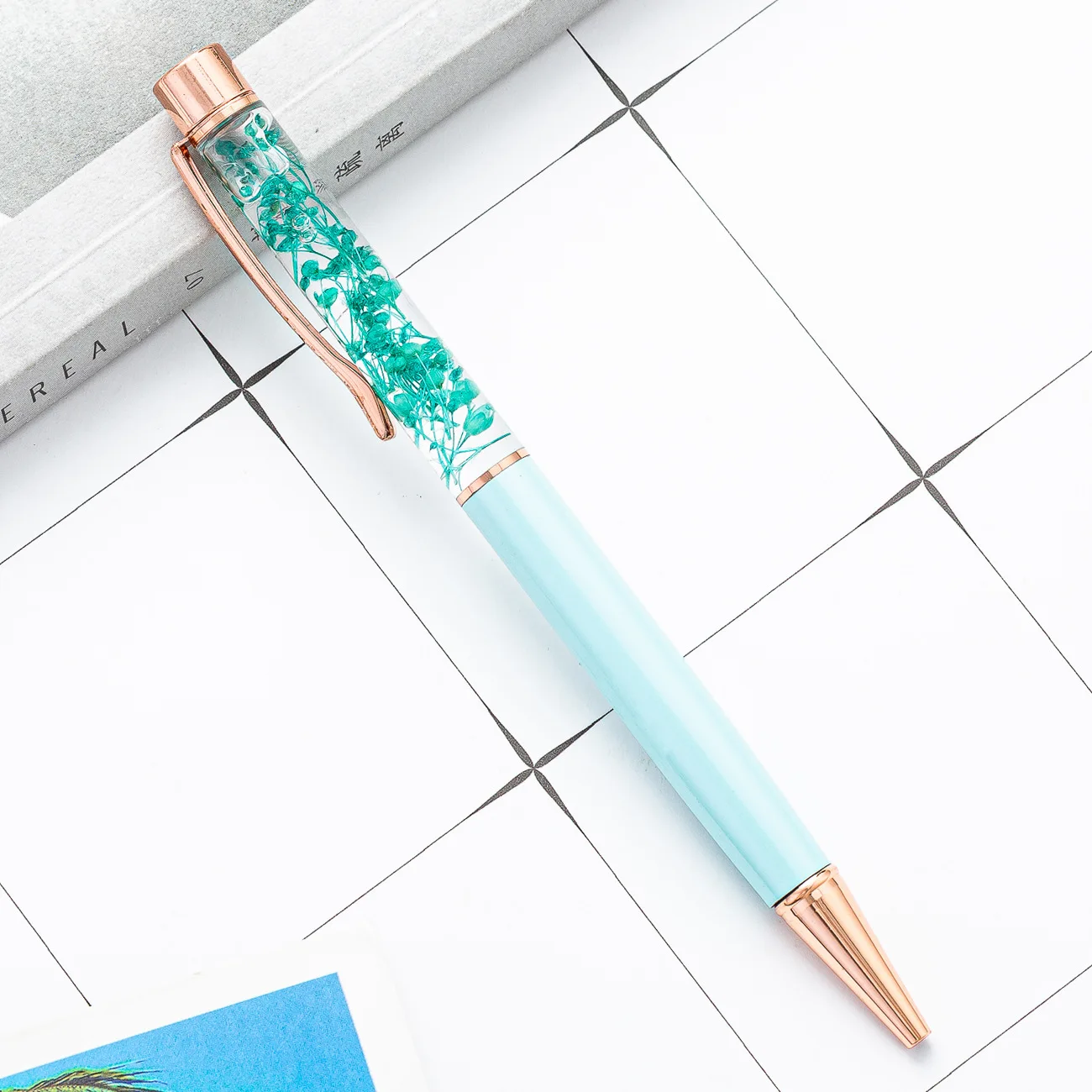 Fancy Girl Luxury Design Black Ballpoint Pens Rose Gold Metal with Real Dry Flower Decor Customized OEM Animal Themes Gift