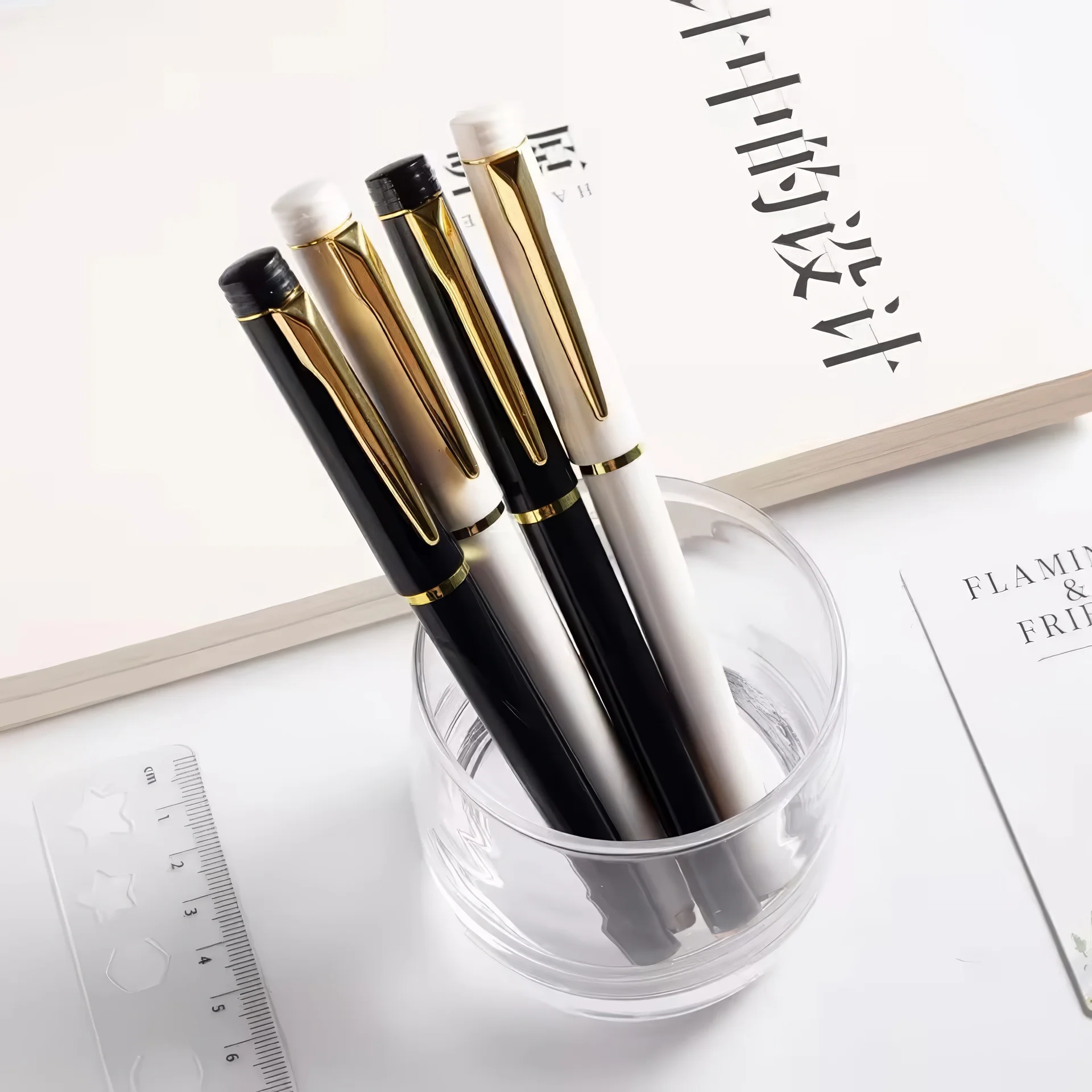 Luxury Custom Logo Gel Pen 0.5mm Black White Popular Plastic Office Christmas Gift Metal Promotional Pen