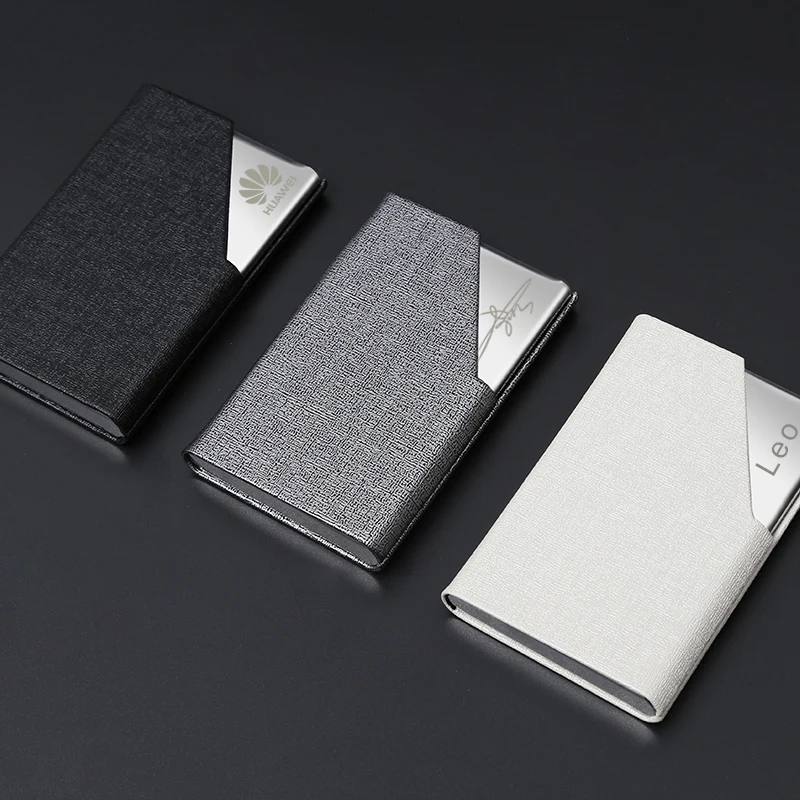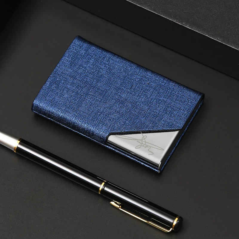 Promotional Low Price High Quality Handmade Pu Leather Business Card case Metal Business Name Card Holder with Custom logo