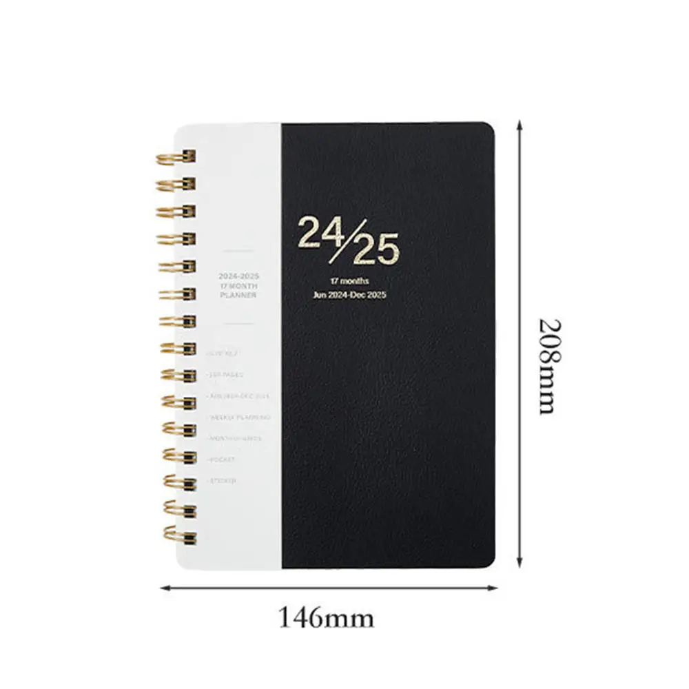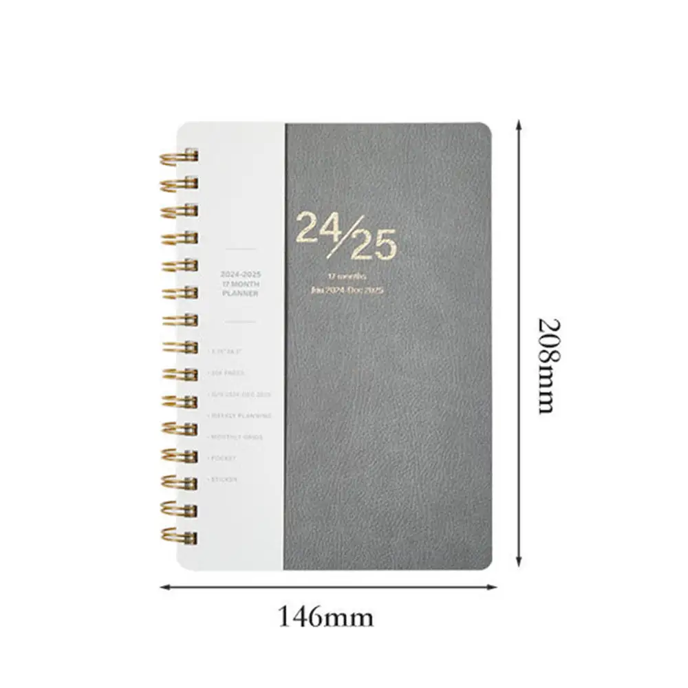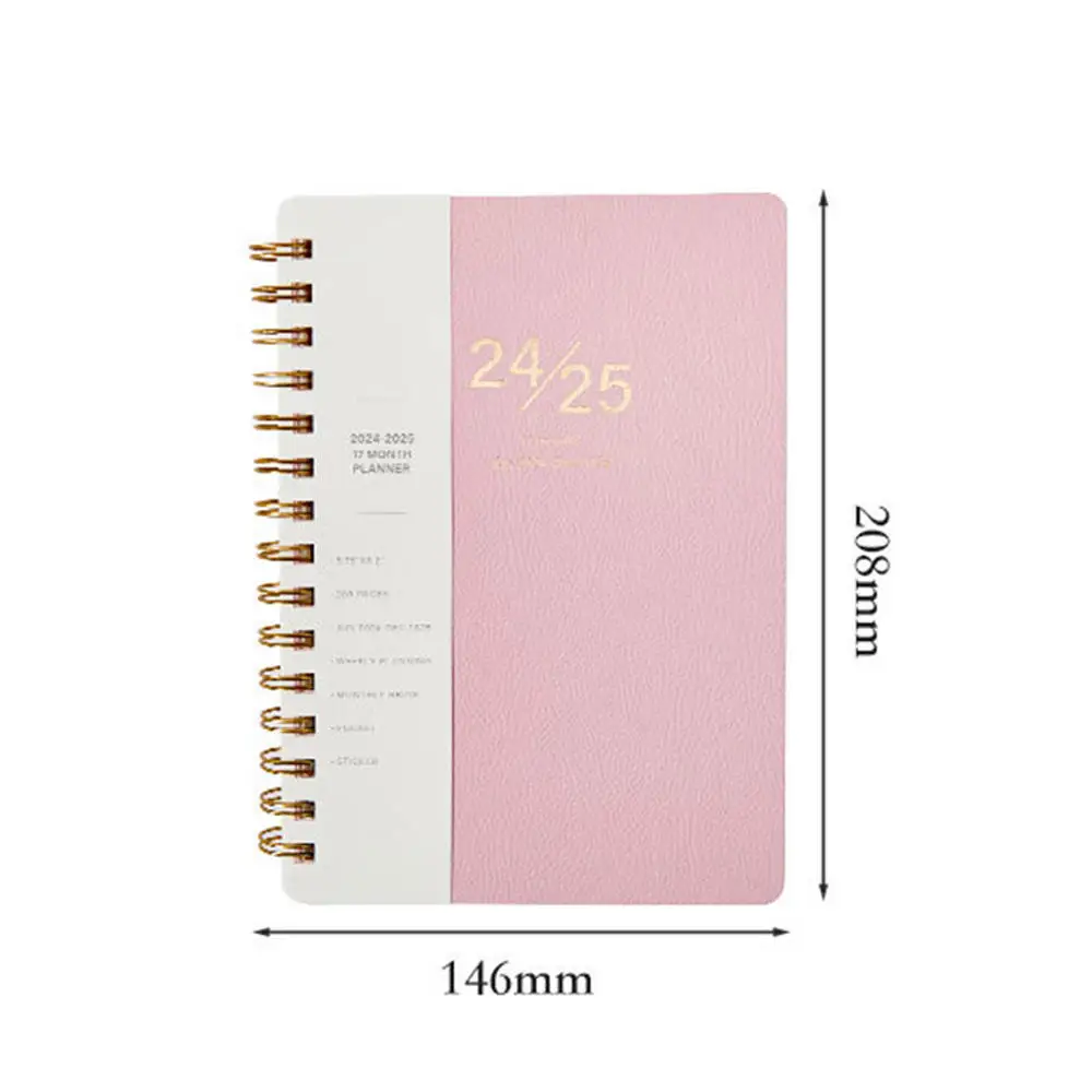 Customized 2026 New Design A5 Size Twin-Ring Planner Agenda PU Leather Spiral Journal Notebook with 17 Months Layout