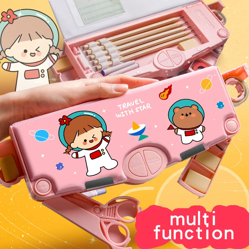 Pop up Multifunctional Pencil Case Organizer Pen Box with 2 Compartments Sharpener Best Back to School Gift Set for Boys Girls K