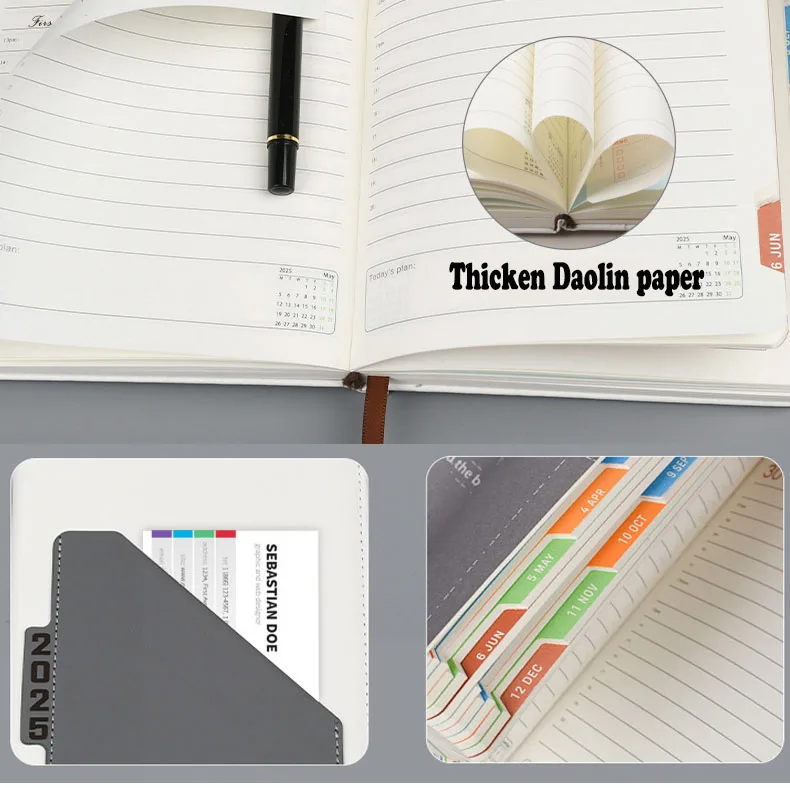2026 Custom Luxury A5 Annual Calendar PU Leather Notebook Business Journal Thread Sewing Office Daily Planner Gift