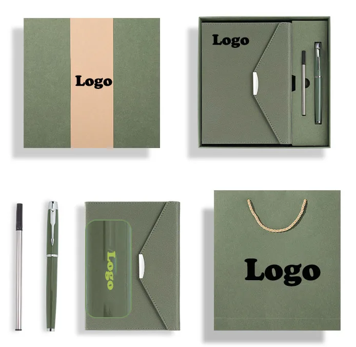Custom Logo Promotions Business A5 Pu Leather Notebook Journal Planner Gift Set with Pen for Christmas