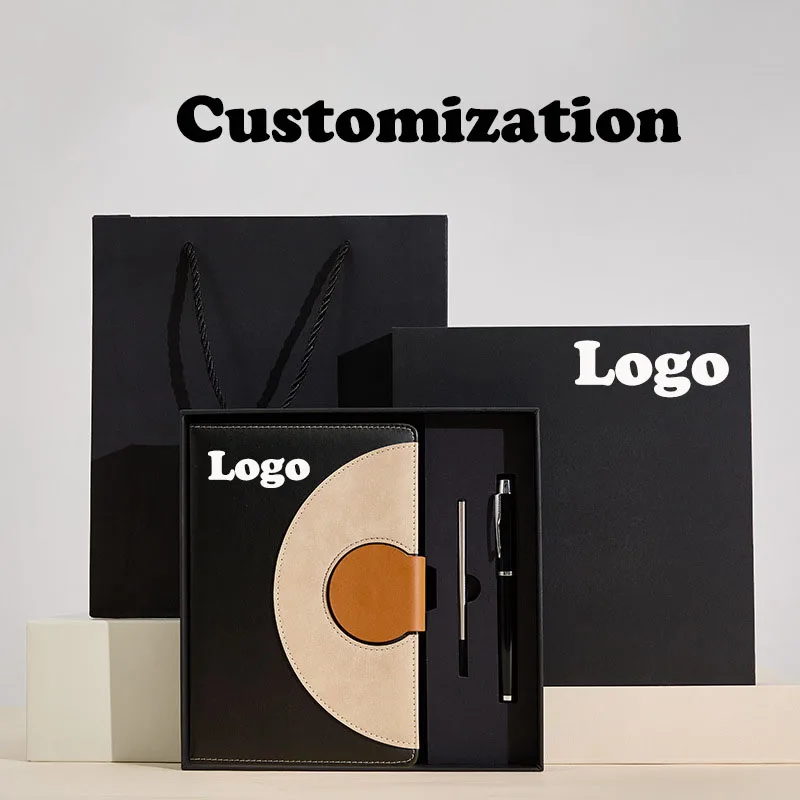 2026 Custom Promotional PU Leather Hardcover A5 Business Notebook Dairy Journal Gift Set with Logo