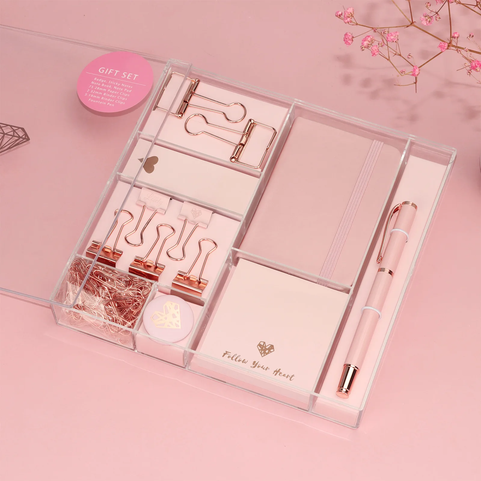 Custom Back to School Diamond Eco Friendly Stationery Gift Set School Supplies Clip Kit