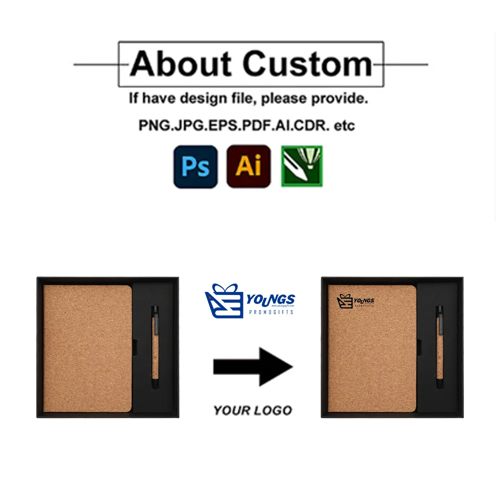 Wholesale Custom Cork Eco Hardcover Diary Journal Notebook A5 Planner Business Gift Set