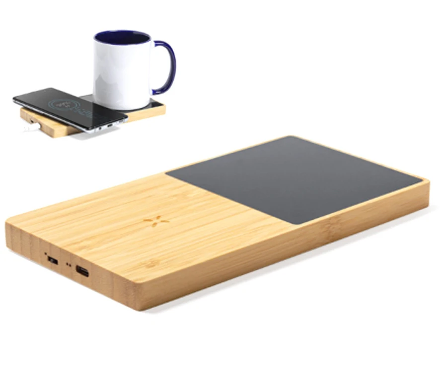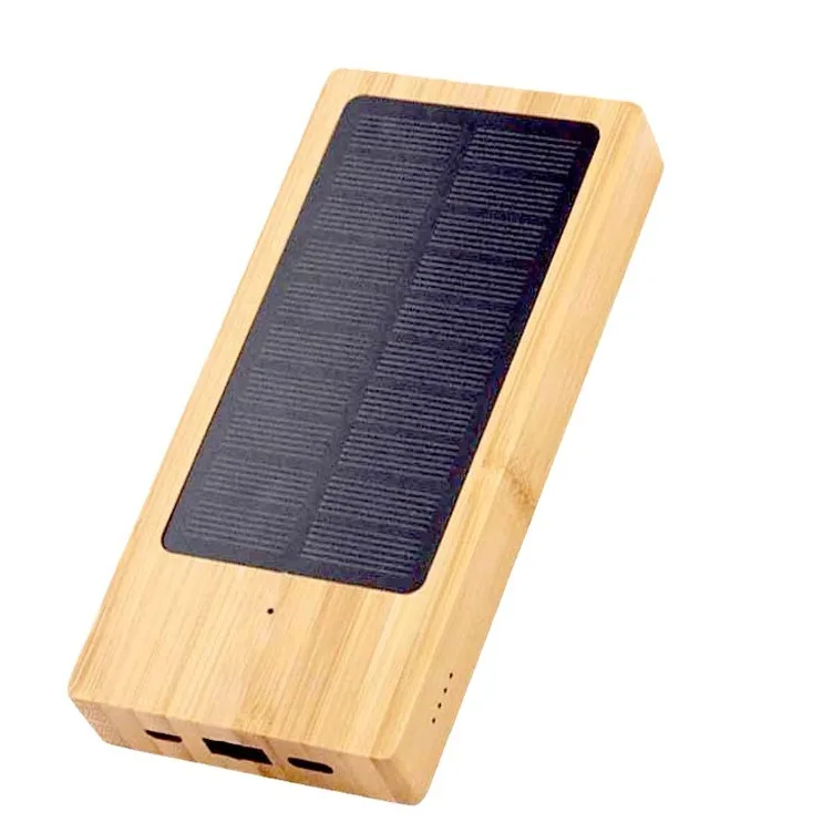 Custom Logo Bamboo Solar Power Bank Fast Charger Charging Pad Dock for Phone