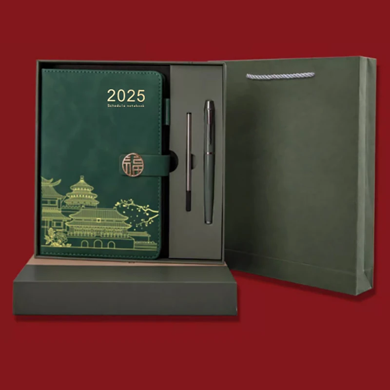 Customized Logo 2026 Planner Business Luxury Hardcover A5 PU Leather Notebook Journals Gift Set