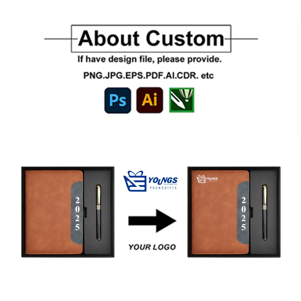 2026 Custom Promotional A5 Planner Journals PU Leather Calendar Notebook Business Gift Set With Pen