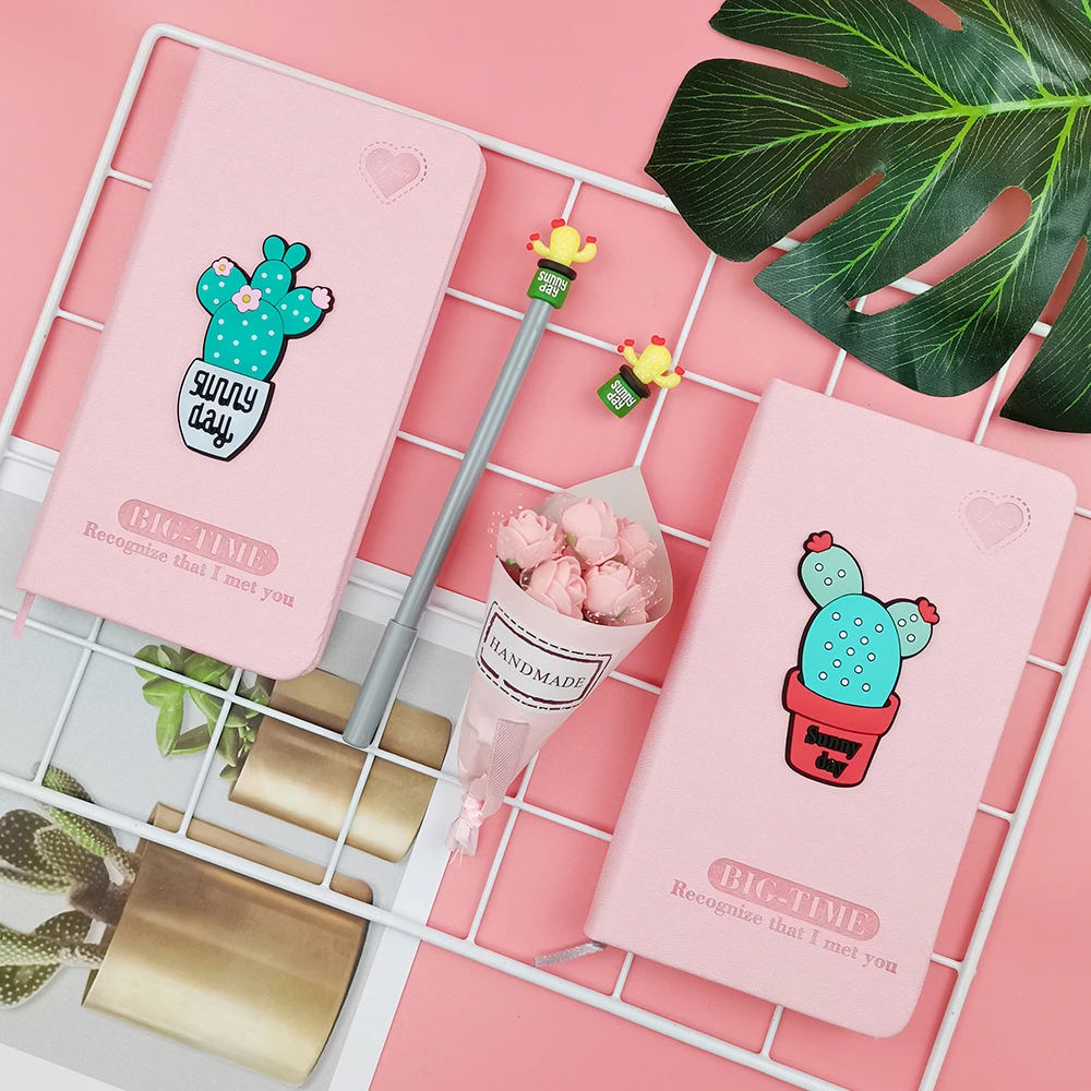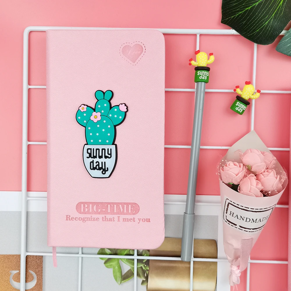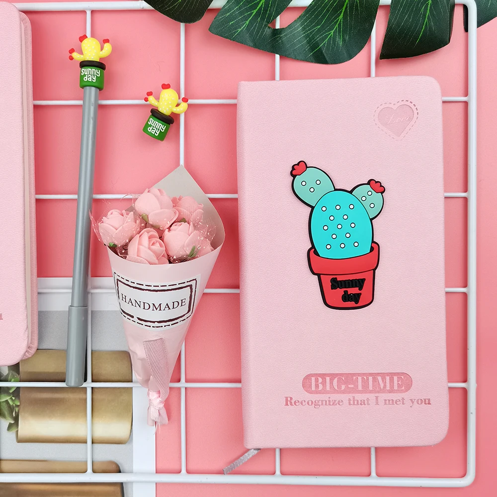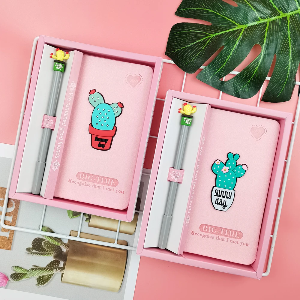 Cute Cactus A6 Notebook Set with Luxury PU Leather Cover CMYK Printed Paper Customizable Logo School and Office Gift