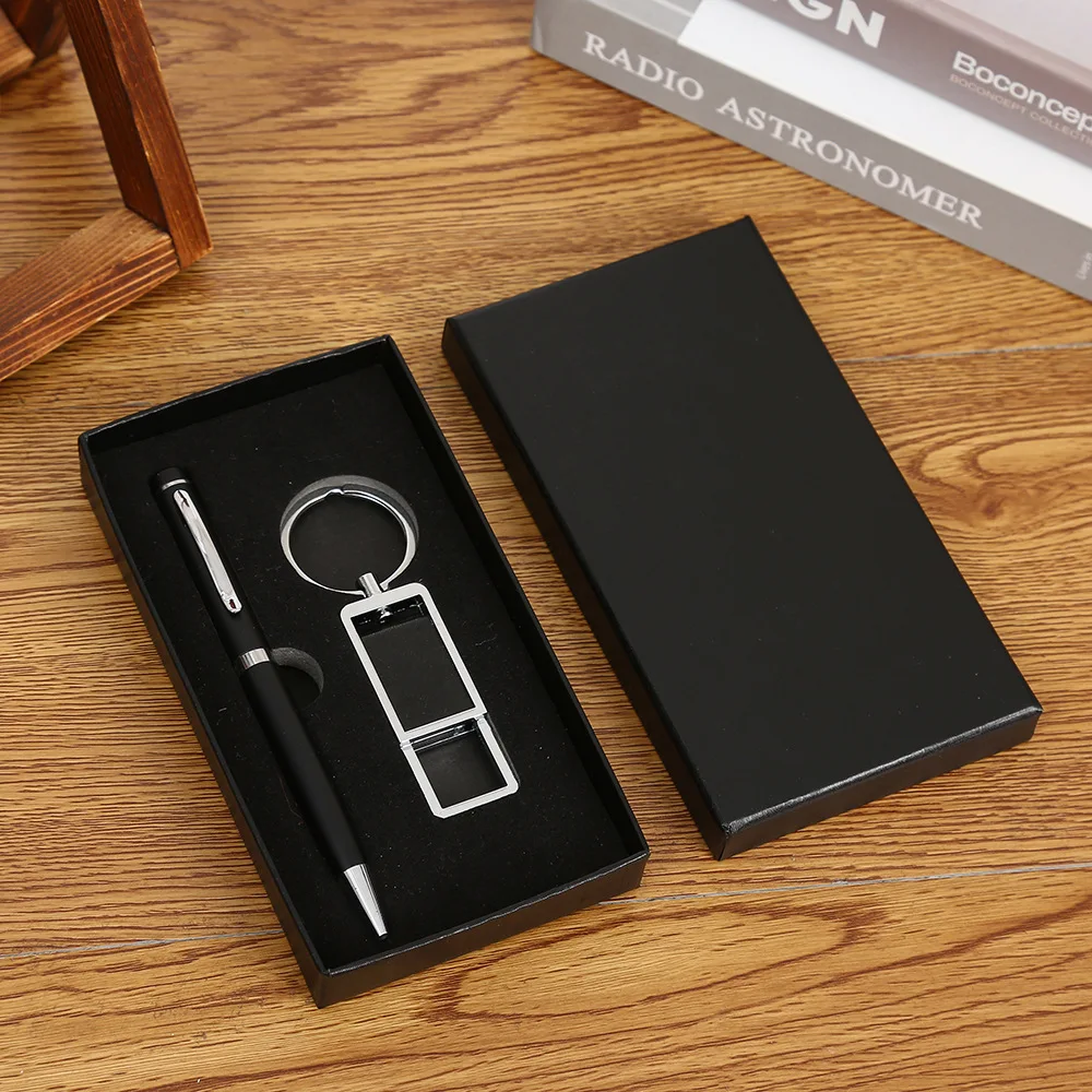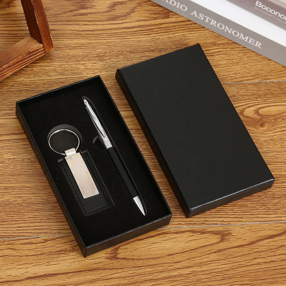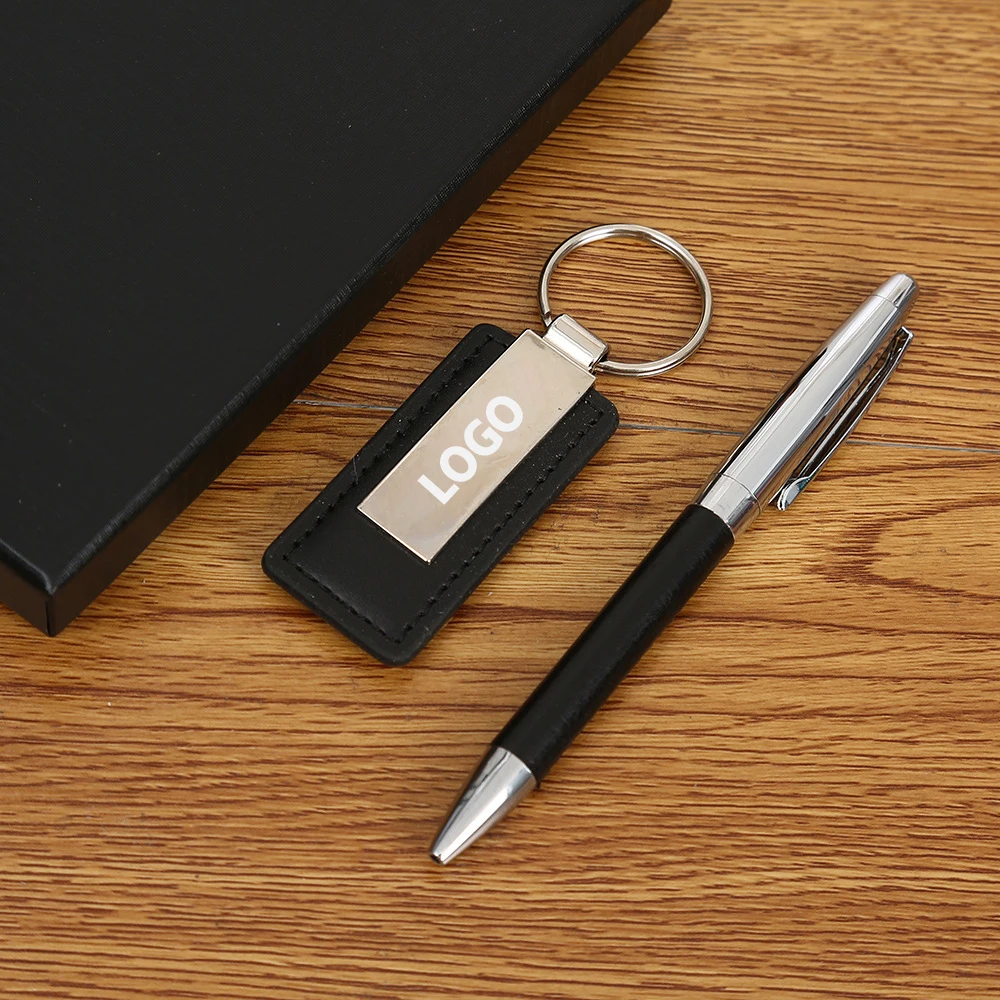 Custom Company Logo Business Corporate Gift Set Leather Metal Keychain Card Holder with Gift Box for Graduation Celebrations