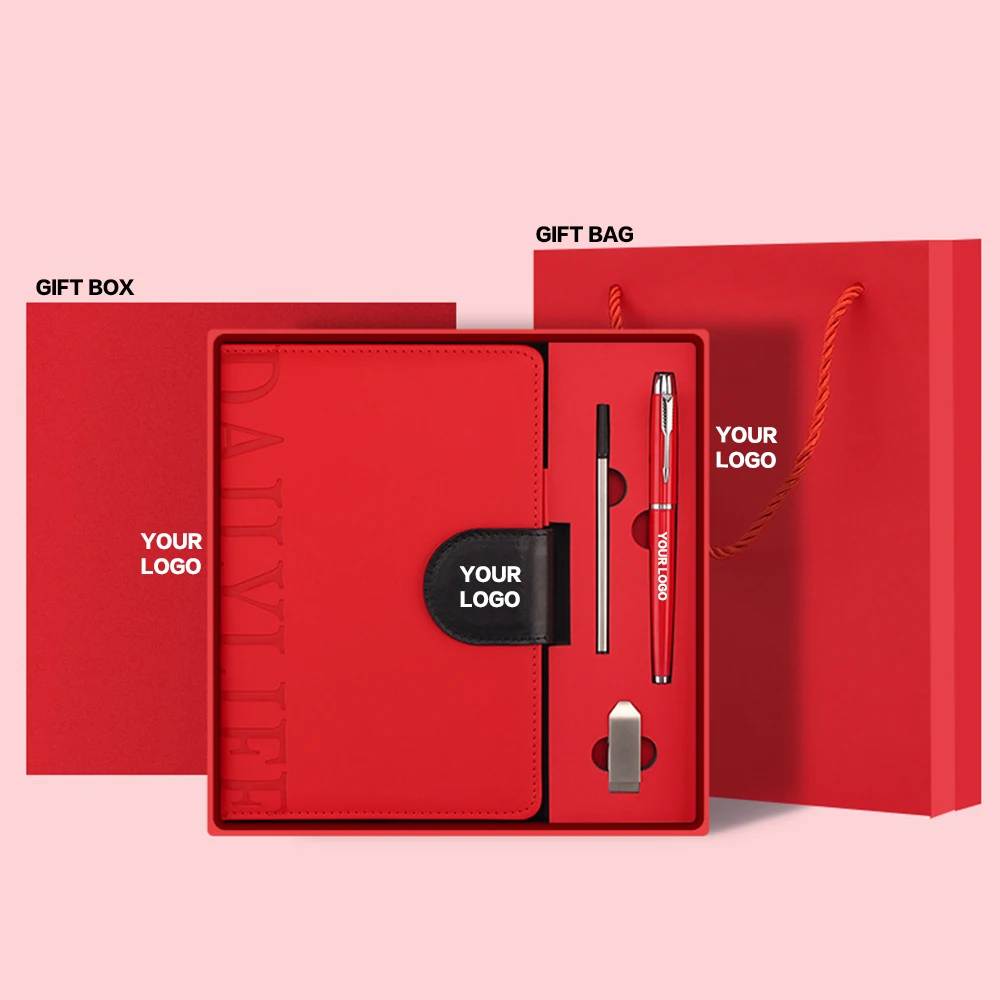 Custom PU Leather Planner Luxury A5 Diary Notebook Journal Gift Set with Logo