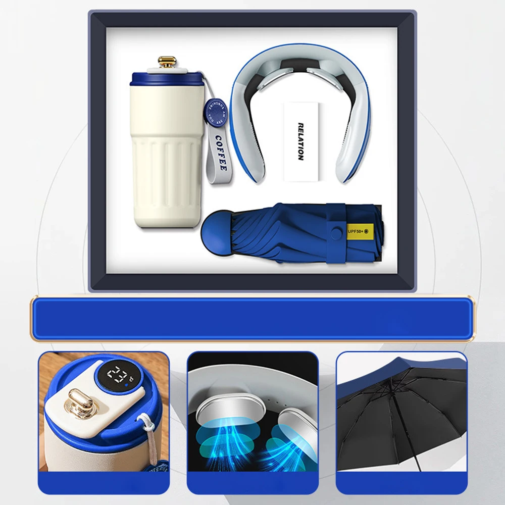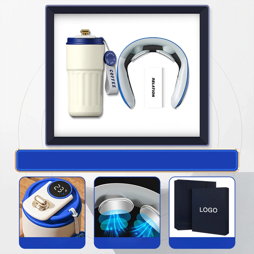 Custom Luxury Business Welcome Cooperate Gift Set Includes Vacuum Flask Neck Massager Power Bank for Back to School Promotion