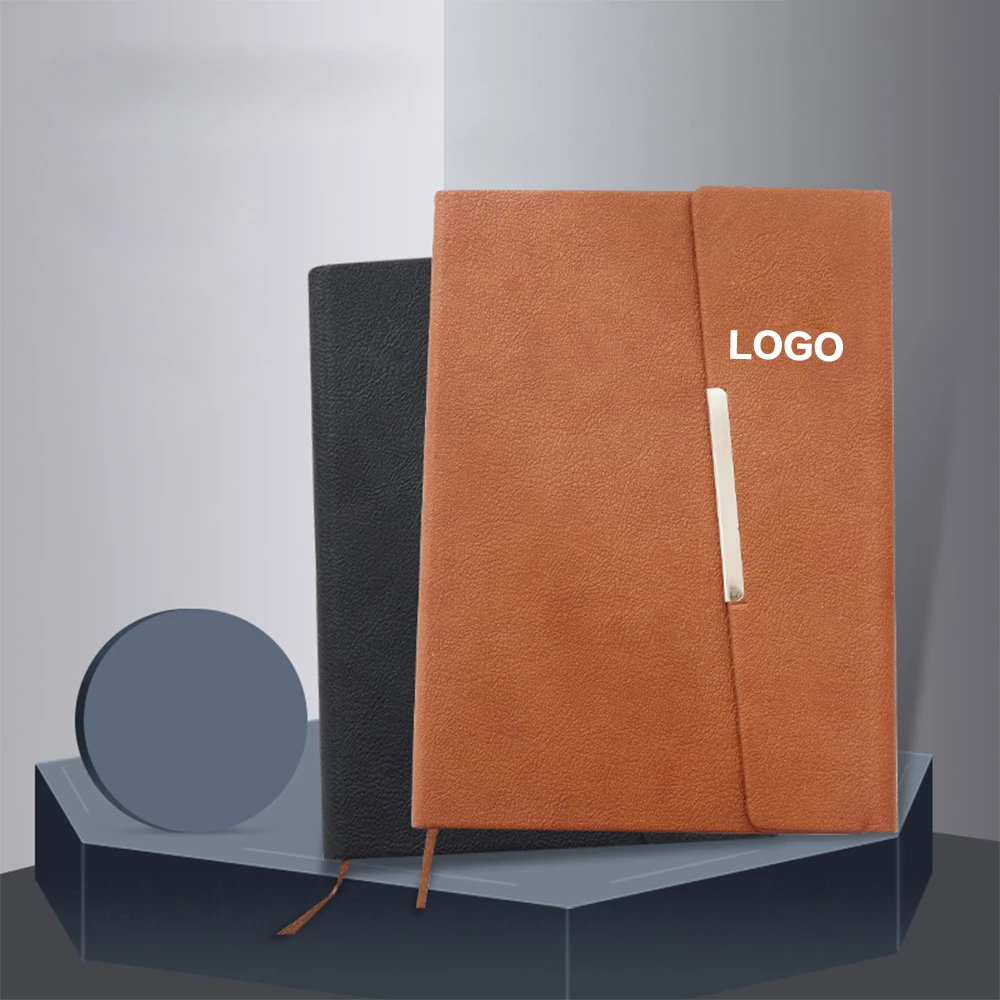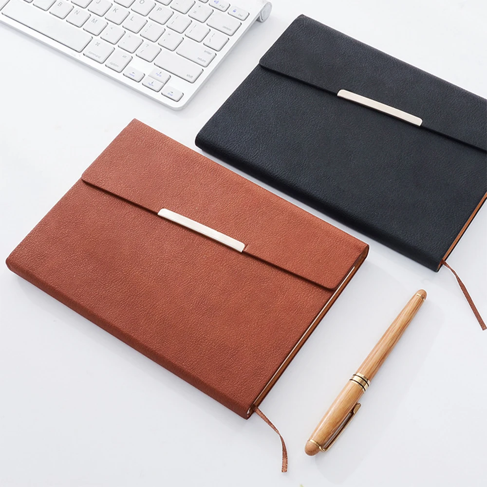 Custom A5 Ruled Pages Notebook PU Leather Hardcover Office Journal with Thermal Binding Magnet Diary Binder Portfolio Folders