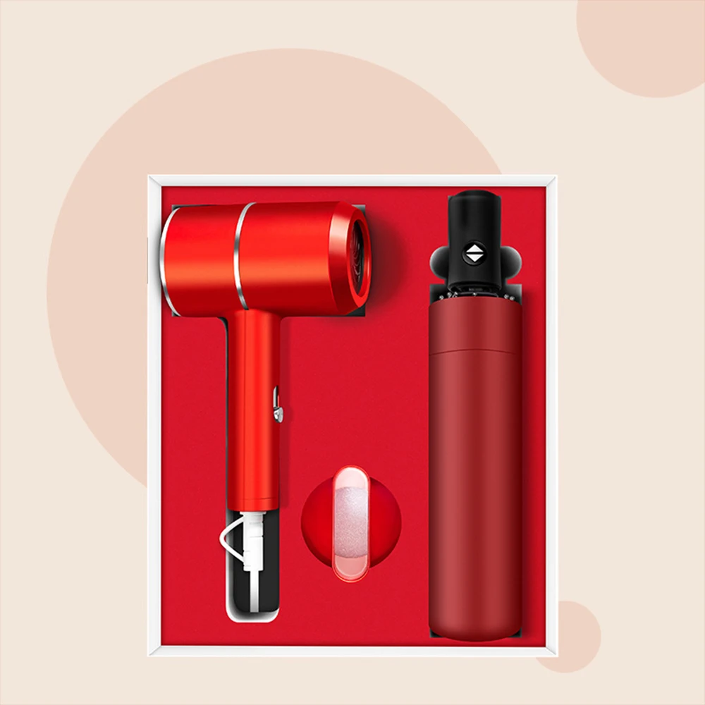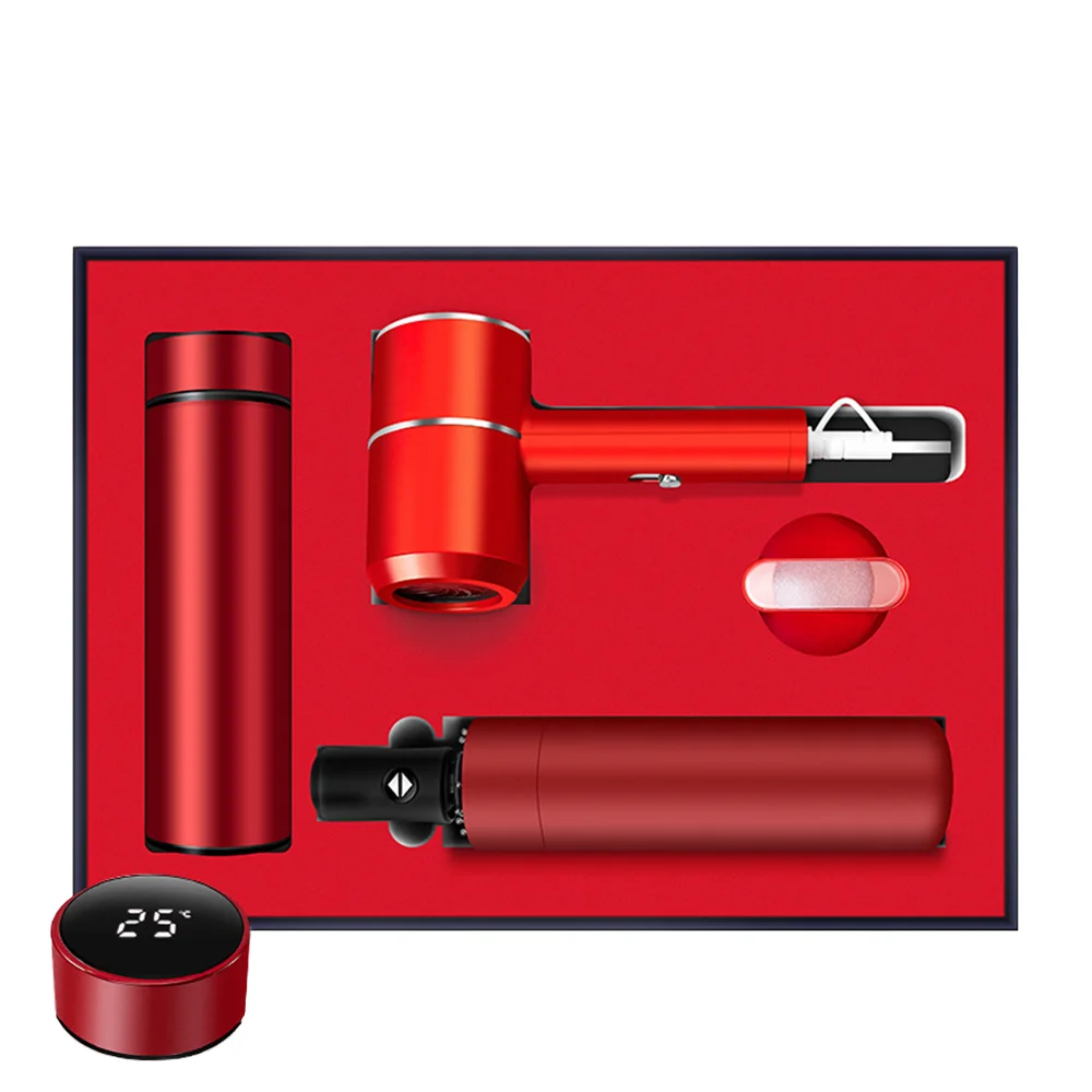 Custom Luxury Wedding and Valentine Gift Set Including Hair Dryer Umbrella Vacuum Flask for New Year and Christmas