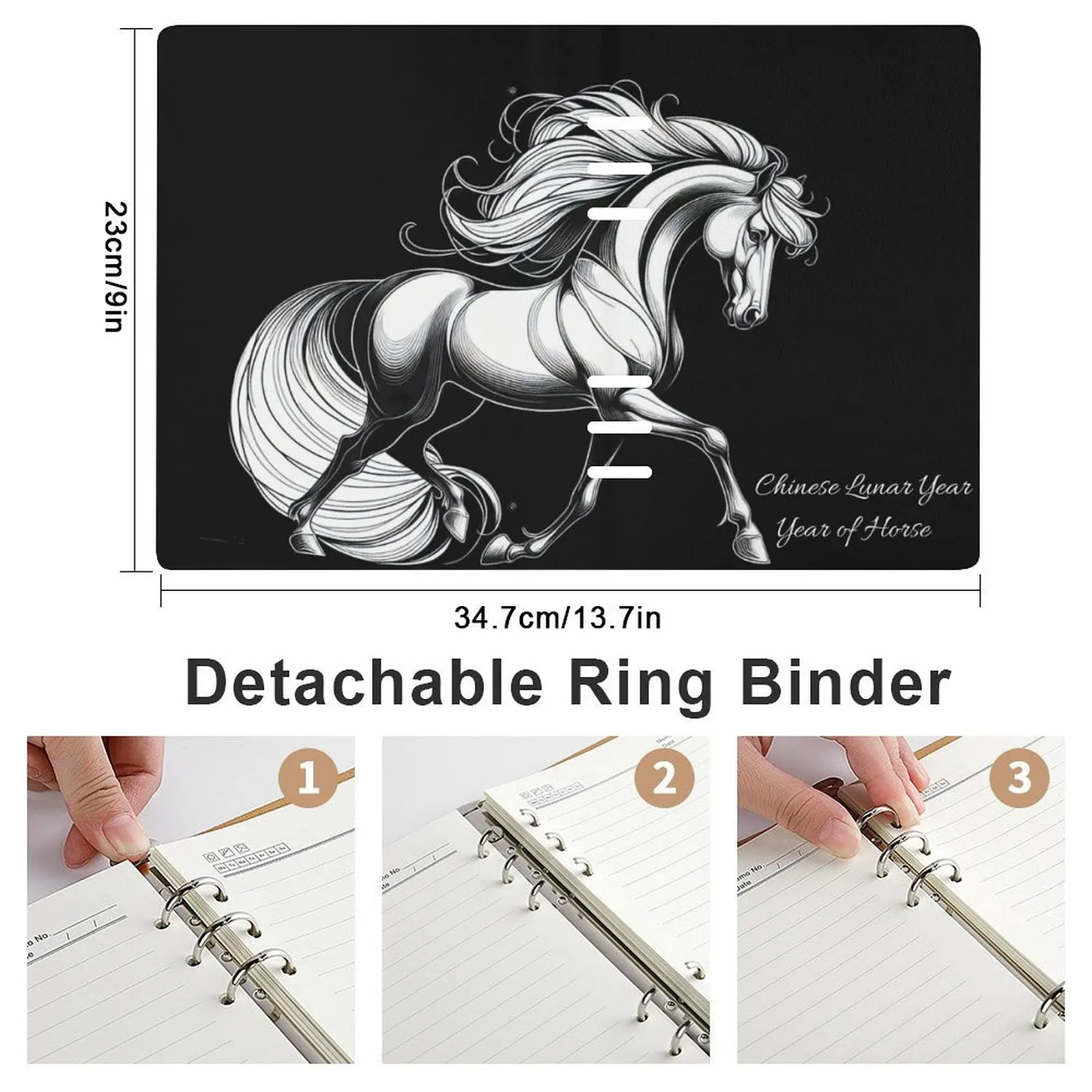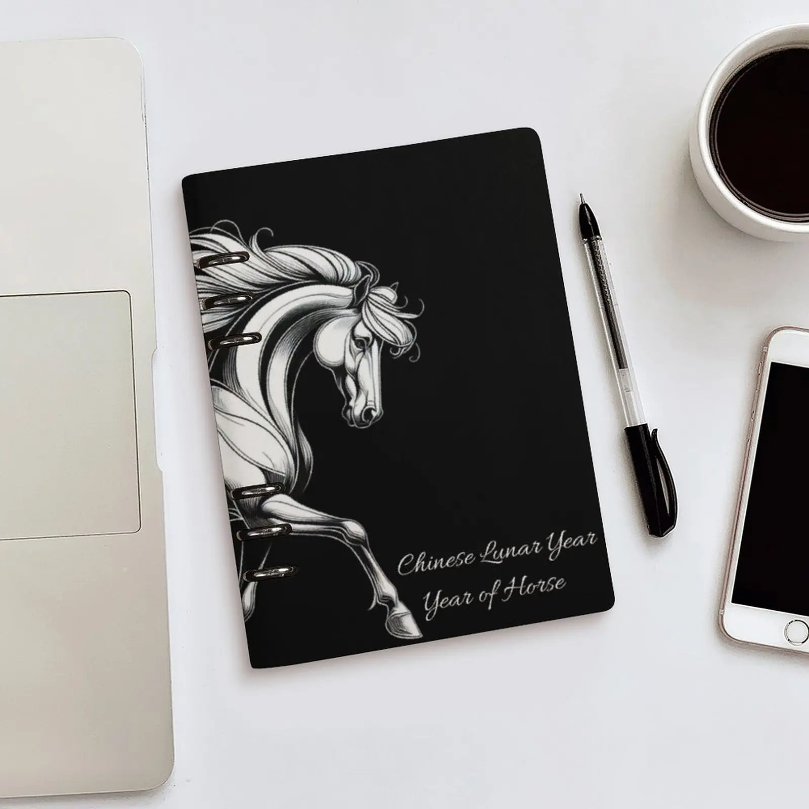 Chinese Lunar Horse Year Planner A5 Notebook Journal PU Leather Hardcover Loose-leaf Binding Agenda Diary Journal Promotional