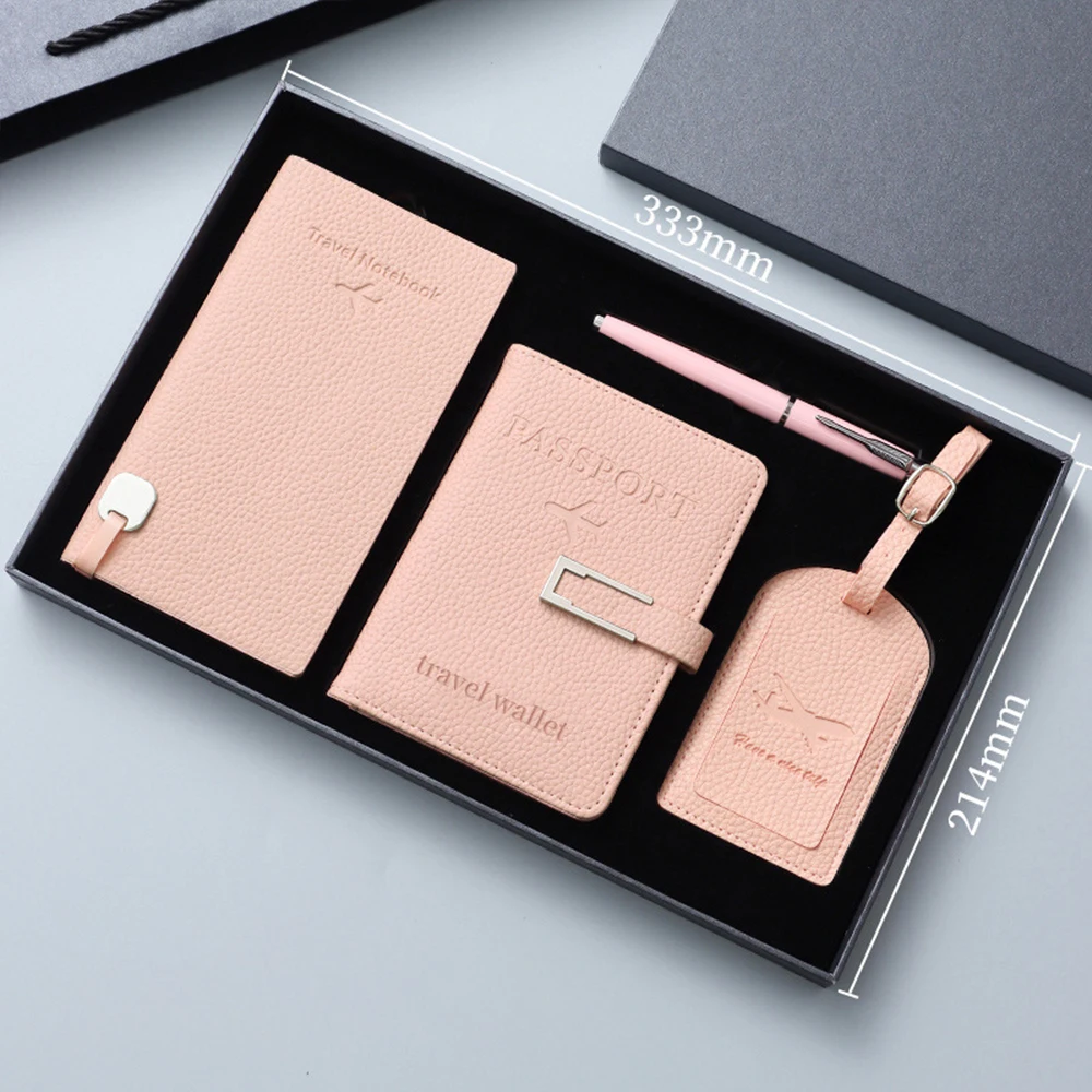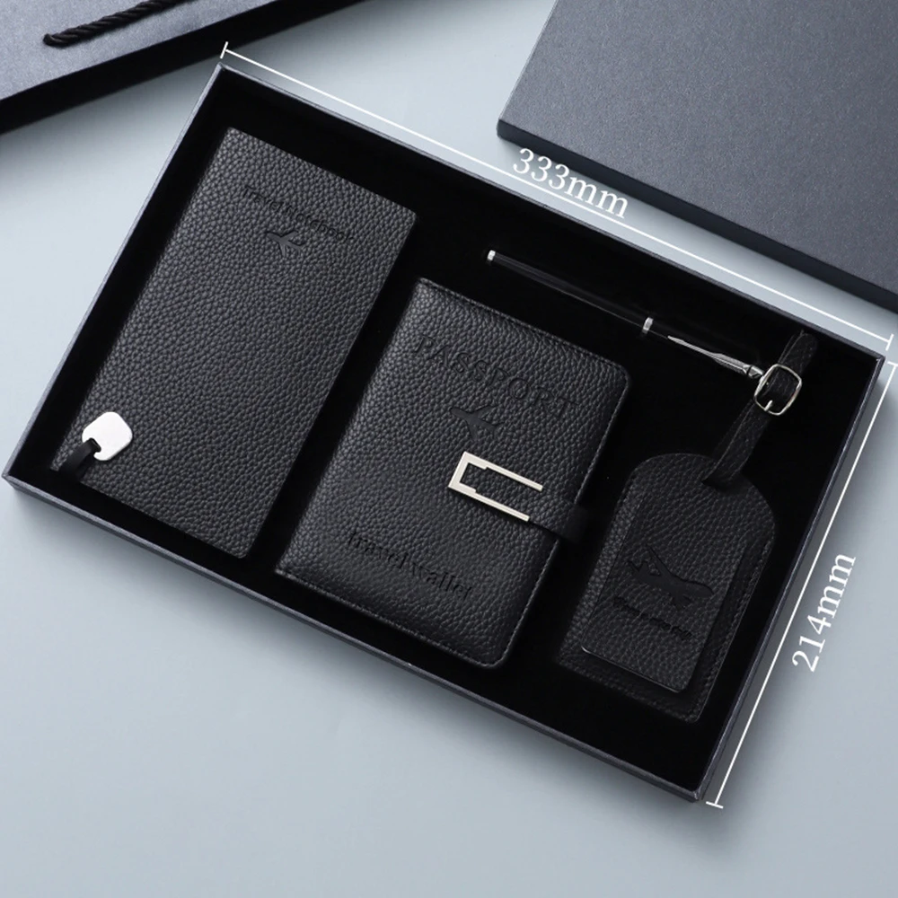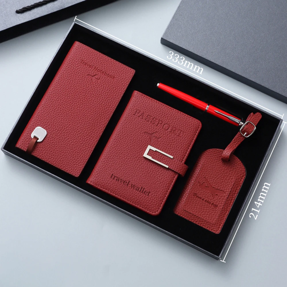 Custom A7 Travel Notebook Promotional Gift Box Set with PU Leather Passport Holder Thermal Bound Pen-for Suitcase Tag