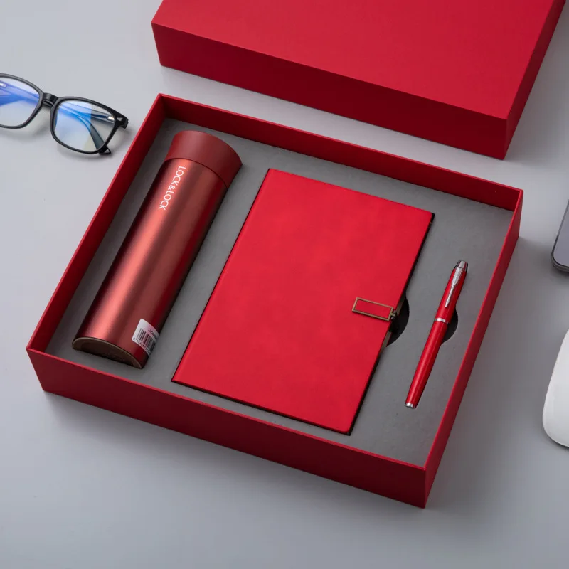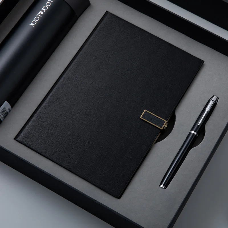 Wholesale A5 Premium Business Notebook Set Custom Logo Fabric Cover Leather Notebook Insulated Water Bottle for Customers' Visit