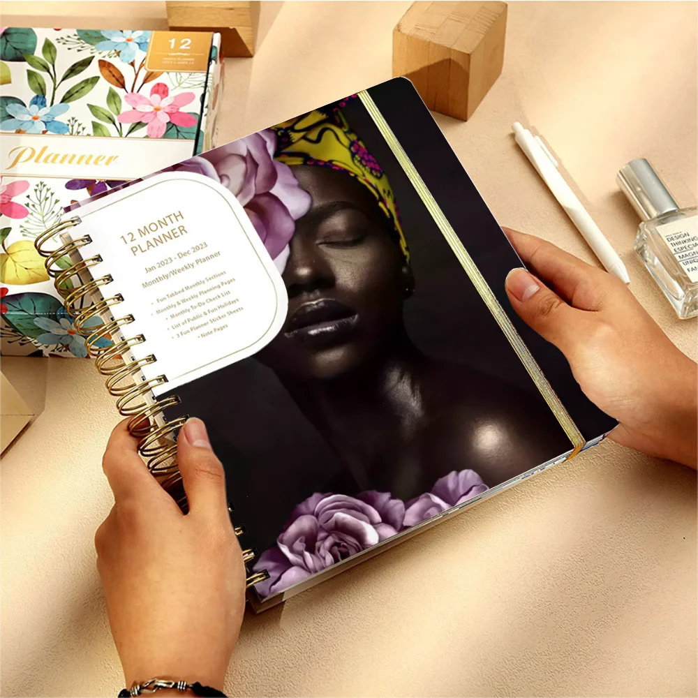 Wholesale Customised Beautiful Black Girl A5 Planner Wedding Stickers Notebook Agenda Journal PP Cover Promotional Notebook Gift