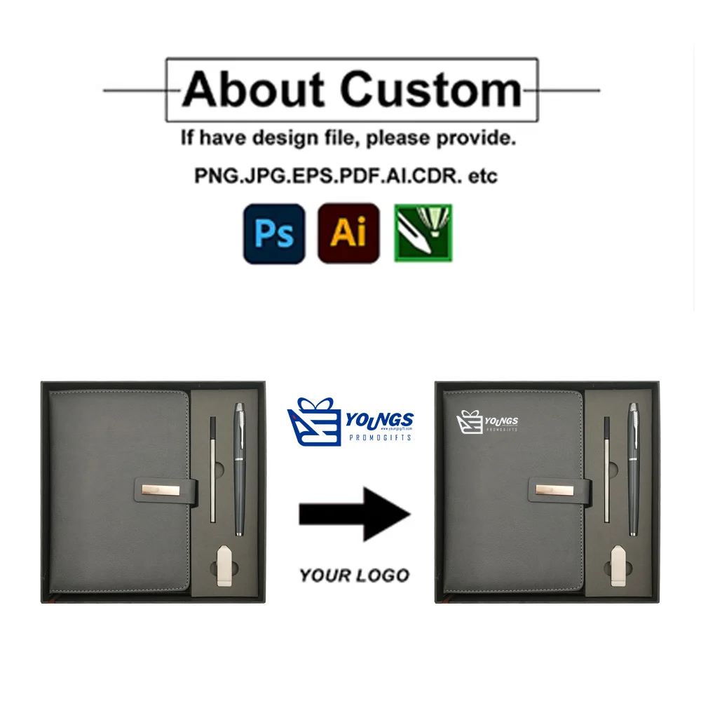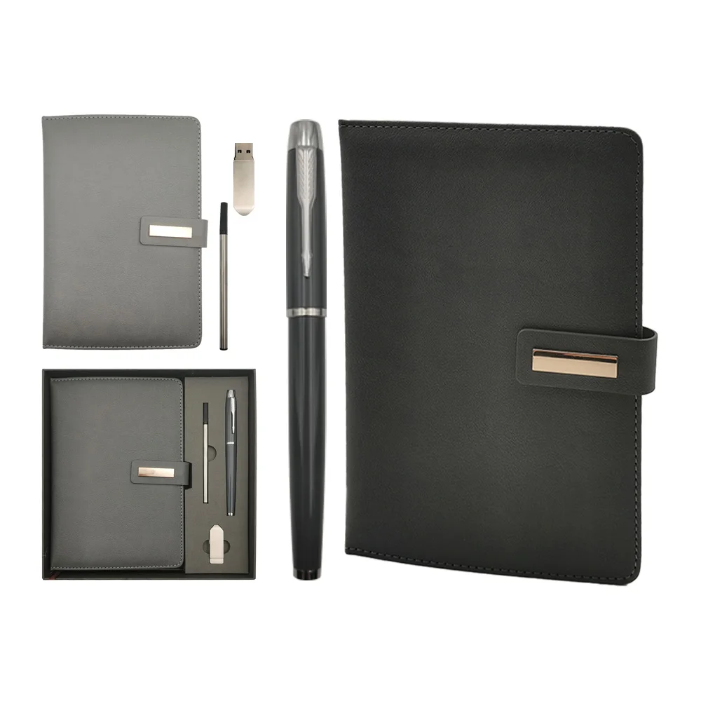 2026 Custom Promotional Luxury Corporate Office Flash Drive PU Leather Business Notebook Gift Set