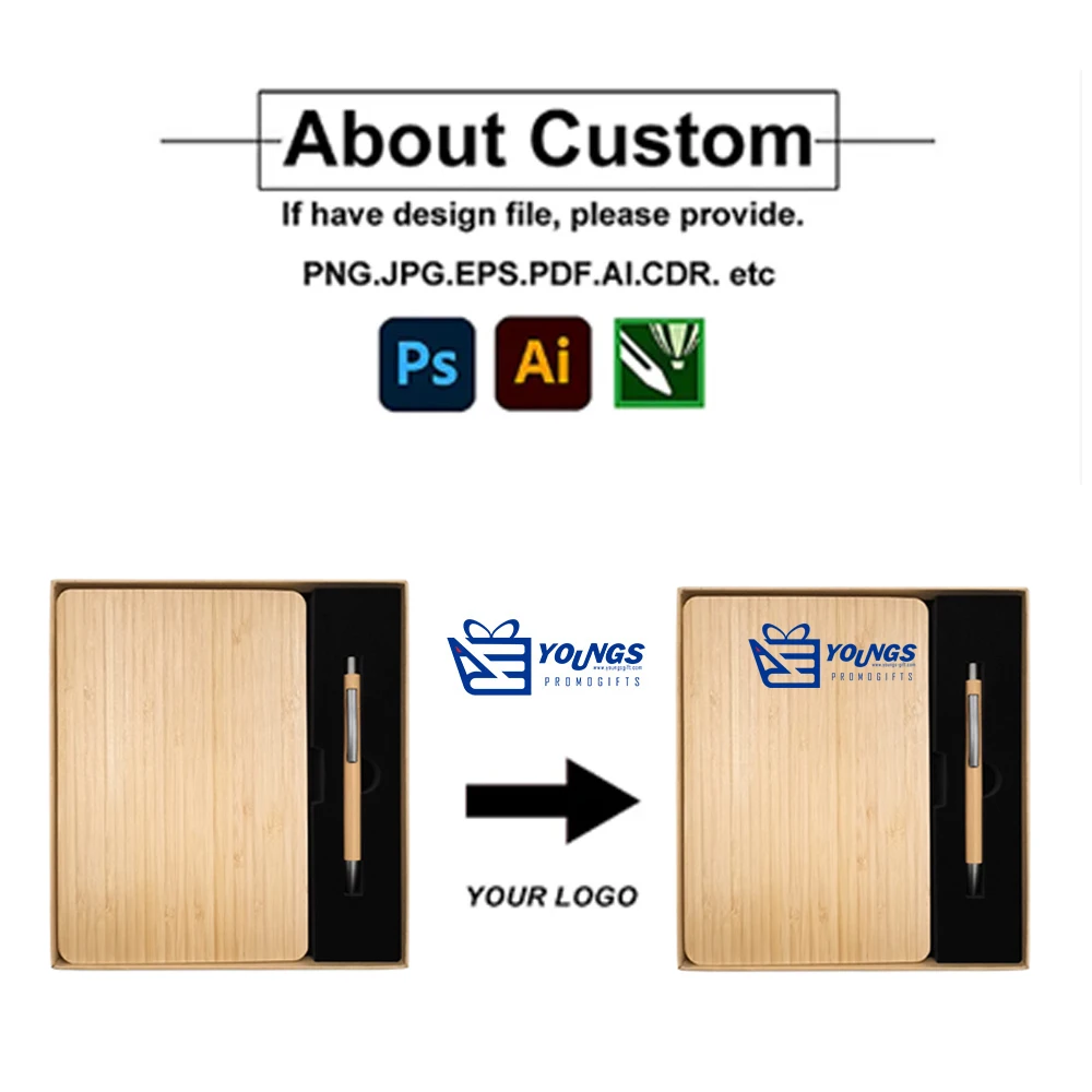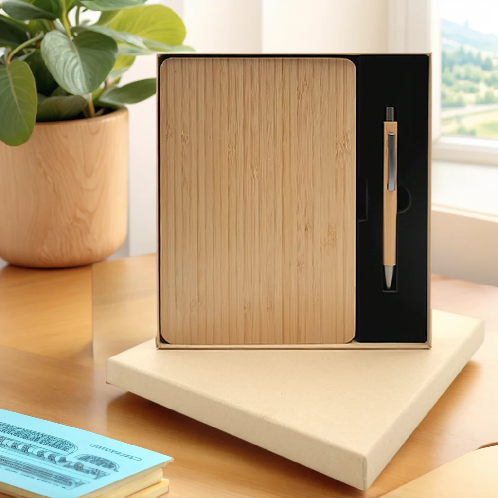 Promotion Bamboo A5 Note Book Custom Logo Diary Journal Writing Notebook Business Gift Set