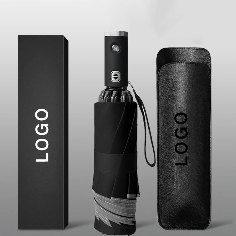 Custom Luxury Business Rain Automatic Umbrella Gift Set with Flashlight