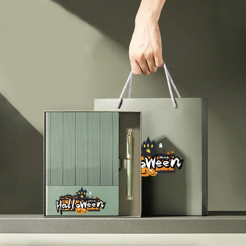 Custom Halloween A5 PU Leather Journal Notebooks Pen Set Corporate Business Promotional Gift Custom Color Silk Screen Printed