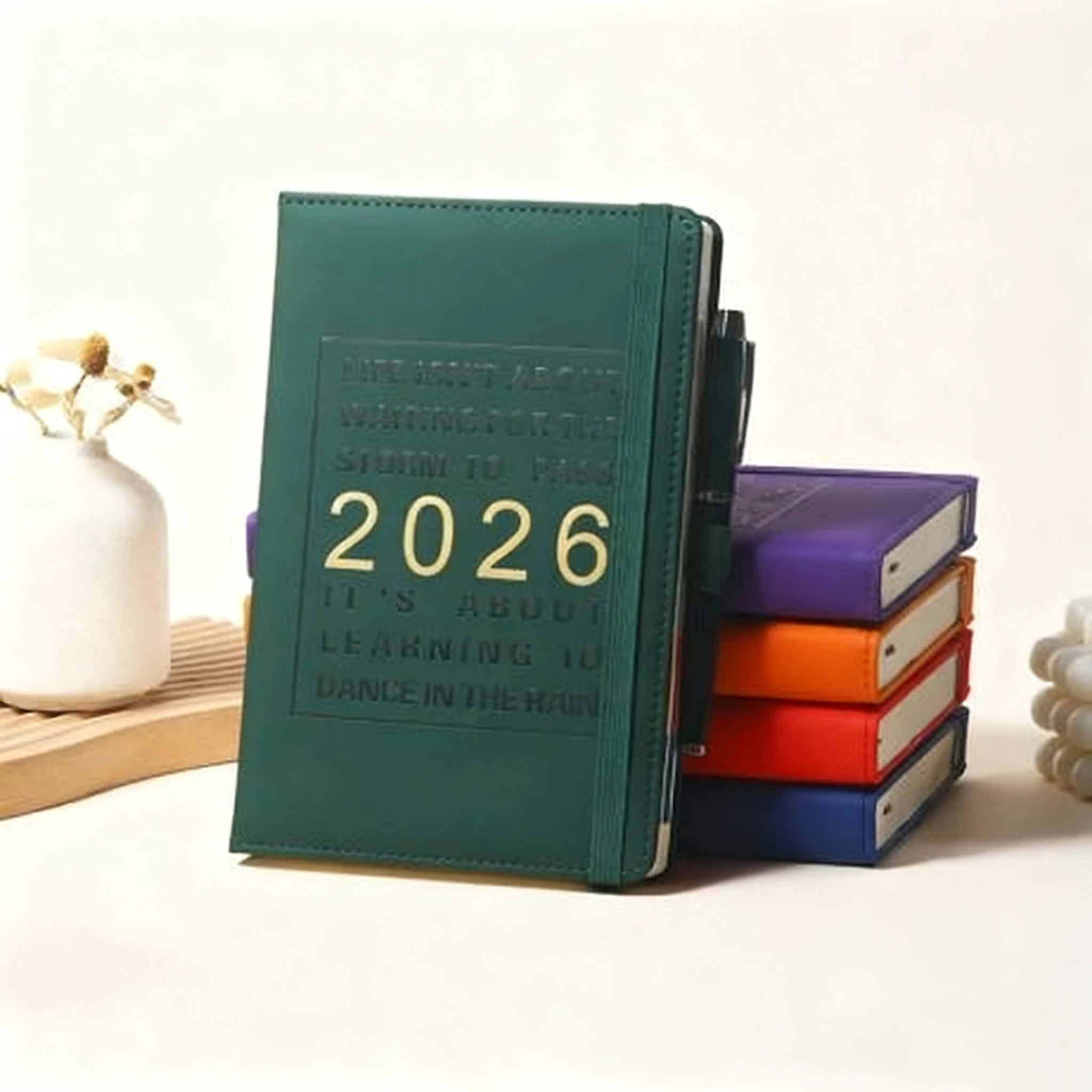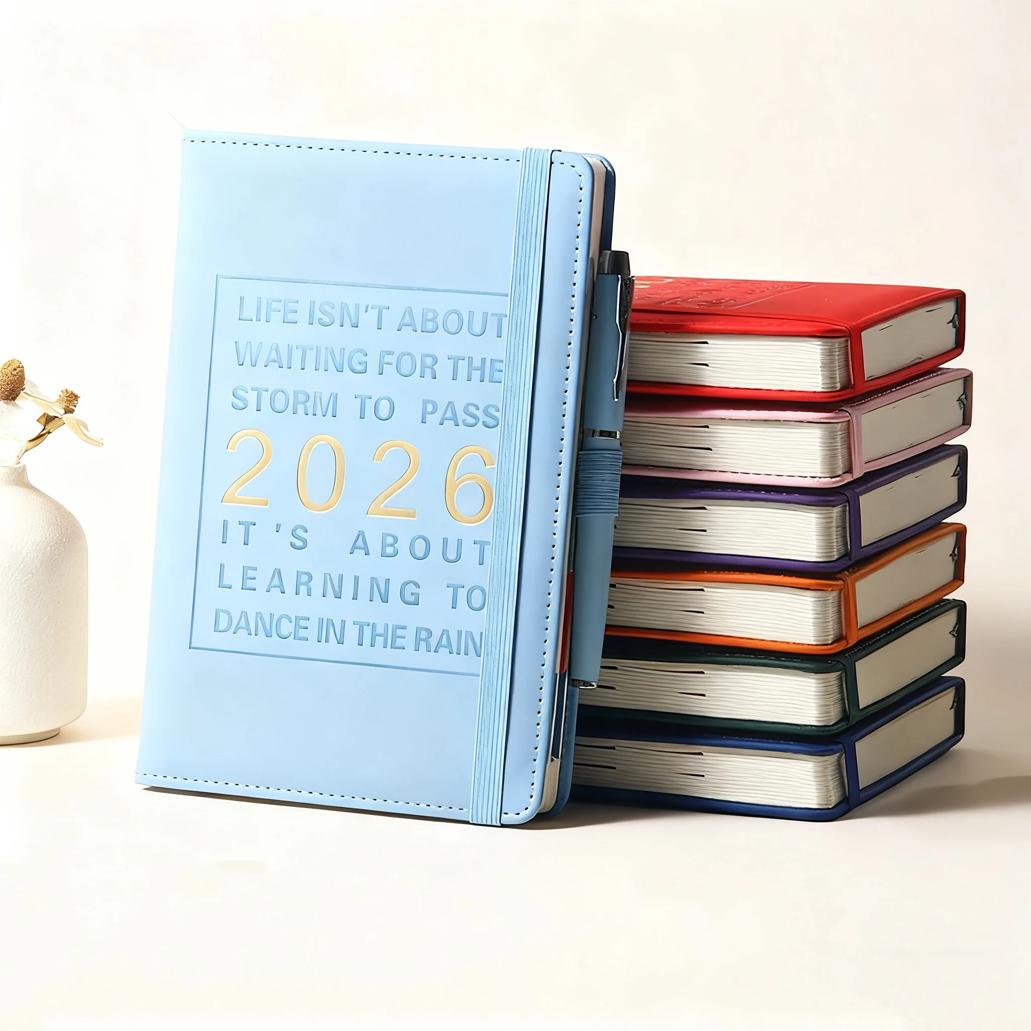 Custom A5 PU Leather 2026 Weekly and Month Planner Agenda Calendars Hardcover Notebook Journals with Logo