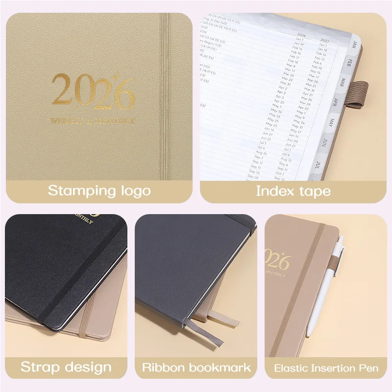2026 New Design Weekly Month A5 Notebook Calendar Custom logo PU Leather Schedule Colorful Agenda Inspiration Diary