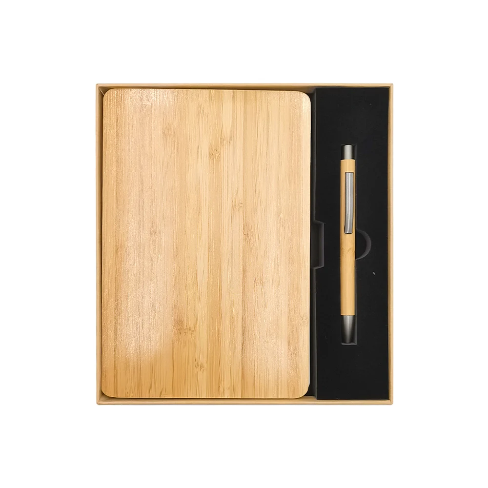 Wholesale Eco-Friendly Custom A5 Bamboo Notebook Set Personalized Business Logo Journal Promotional Gift Set Included