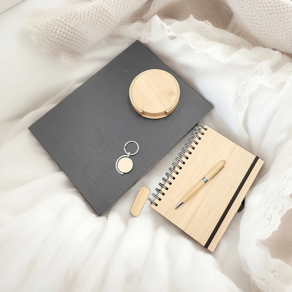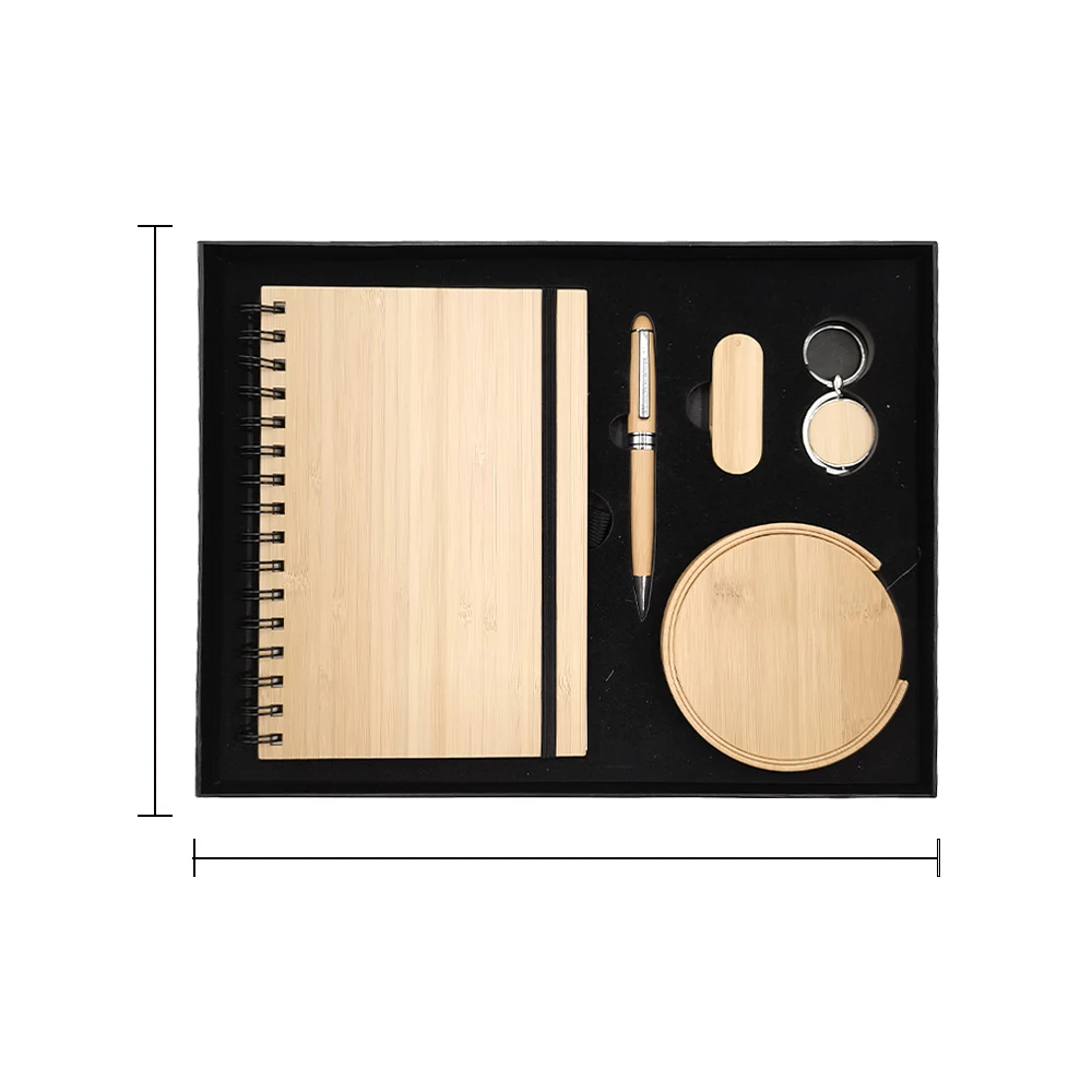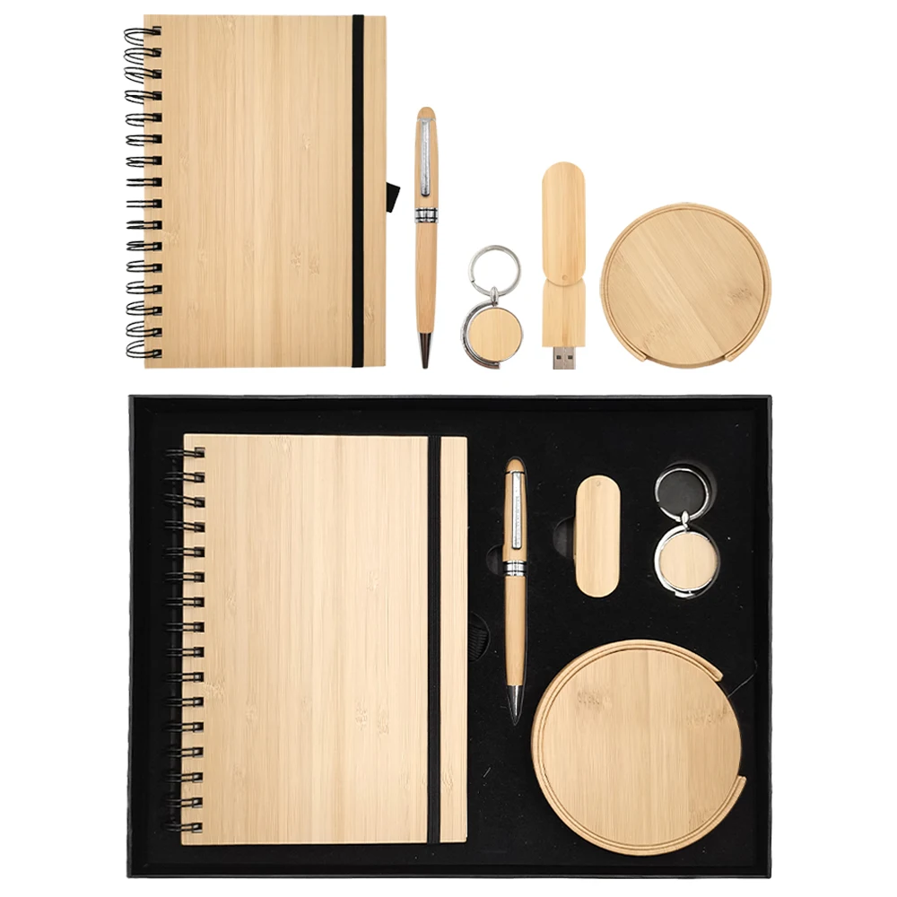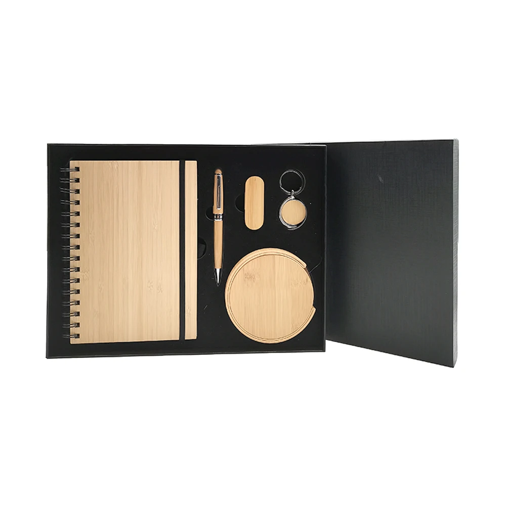 New Arrival Custom Logo Bamboo 5-in-1 Business Notebook Gift Set Luxury Corporate Promotional Luxury Box Included