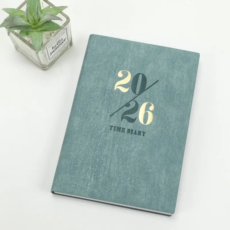 A5 Hardcover Planner Custom Diary Printing Leather Daily Weekly Monthly Planner 2026 Diary 365-days Plannerbook