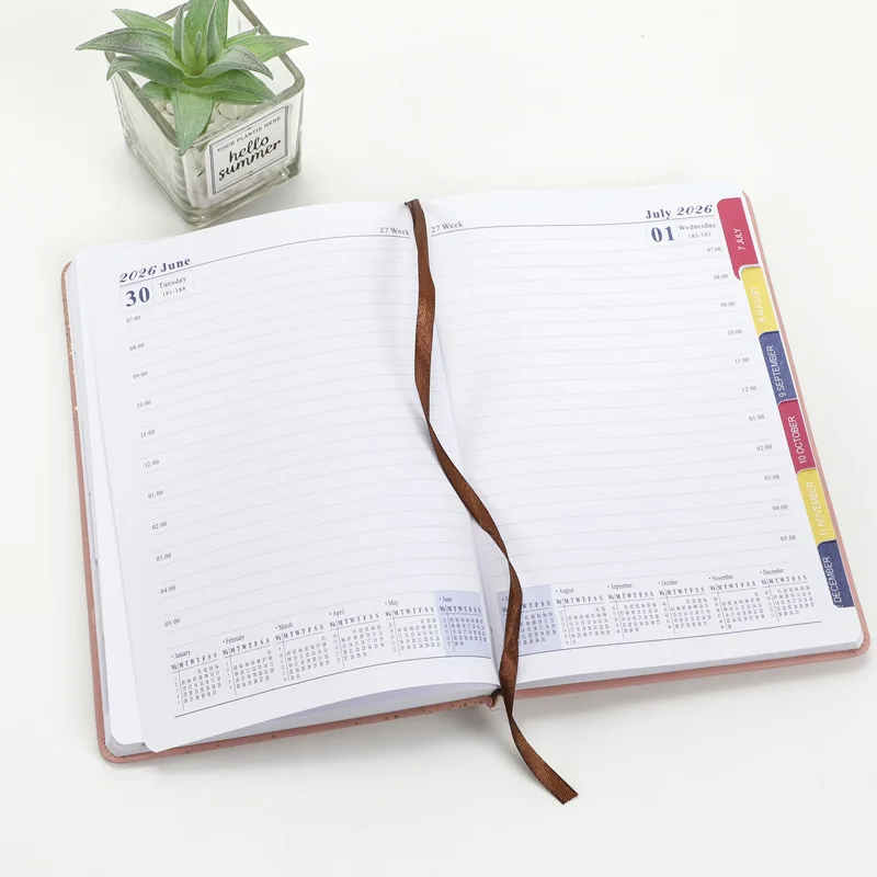 New Eco-friendly Leather A5 Hardcover Notebook 2026 Pure English Foreign Trade Calendar Book Spanish Schedule Book Customization