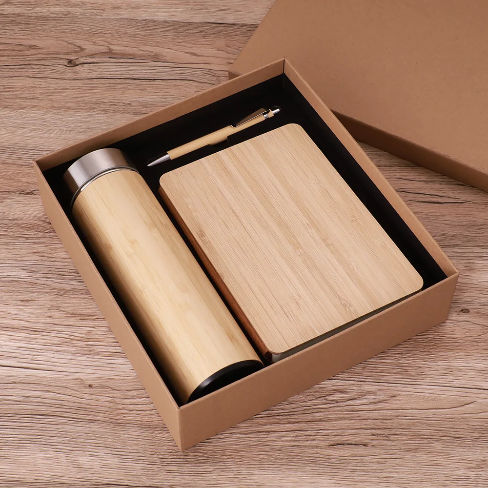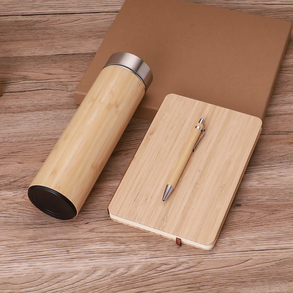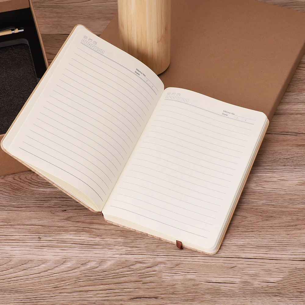 Custom Promotions A5 Bamboo Notebook Corporate Gift Sets for Education Hardcover with Leather Cover Thread or Thermal Binding