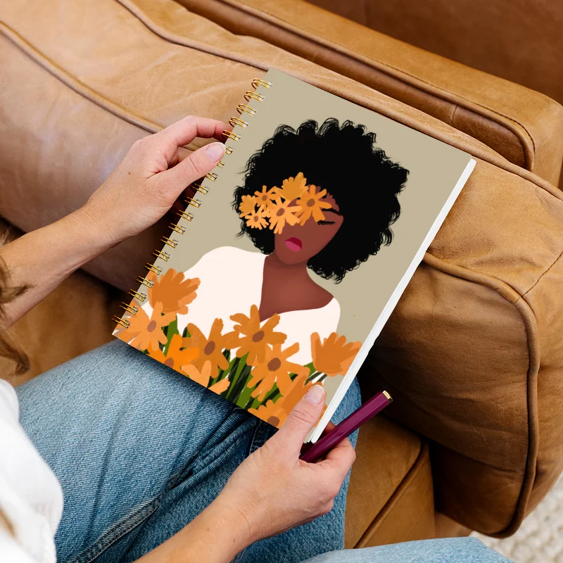 Large Spiral Notebook B5 Customizable Cover Paper School Beautiful Girl Self-Care Planner Sewing Binding