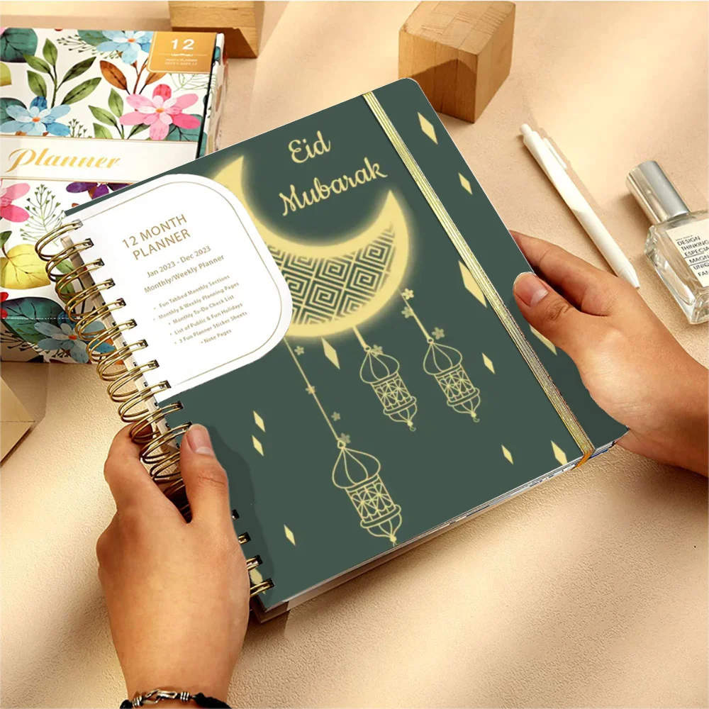 Wholesale Cheap Customised A5 Leather Diary 300G Spiral Binding Ramadan Planner Manifestation Bible Notebook Fabric PP Cover