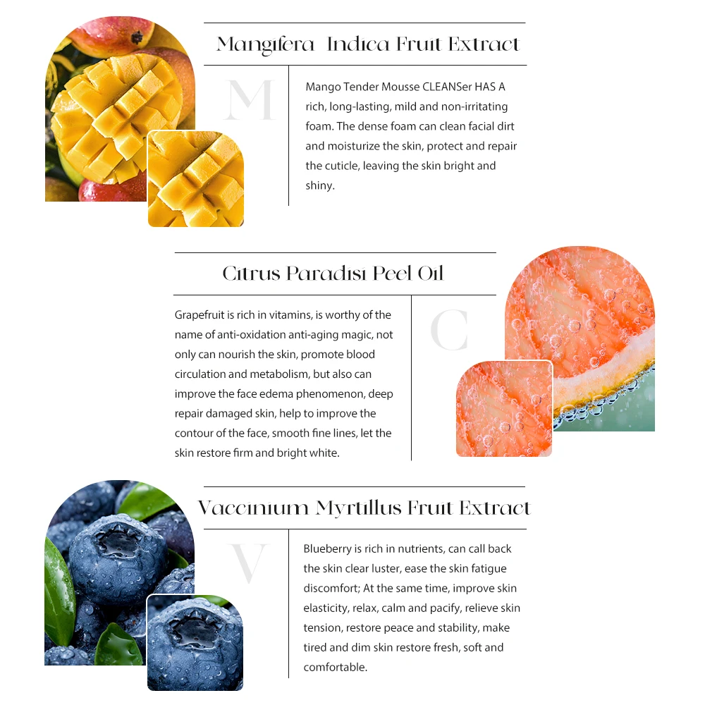 Organic Natural Fruit Facial Cleanser Mousse OEM/ODM Vegan Herbal for Adults Varieties Include Mango Grape Watermelon