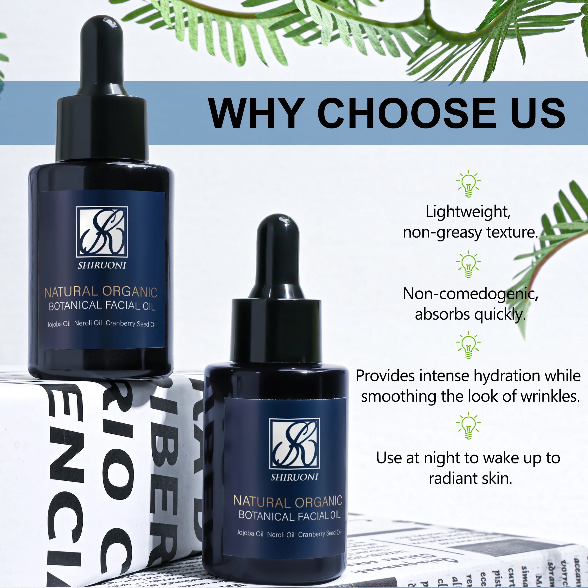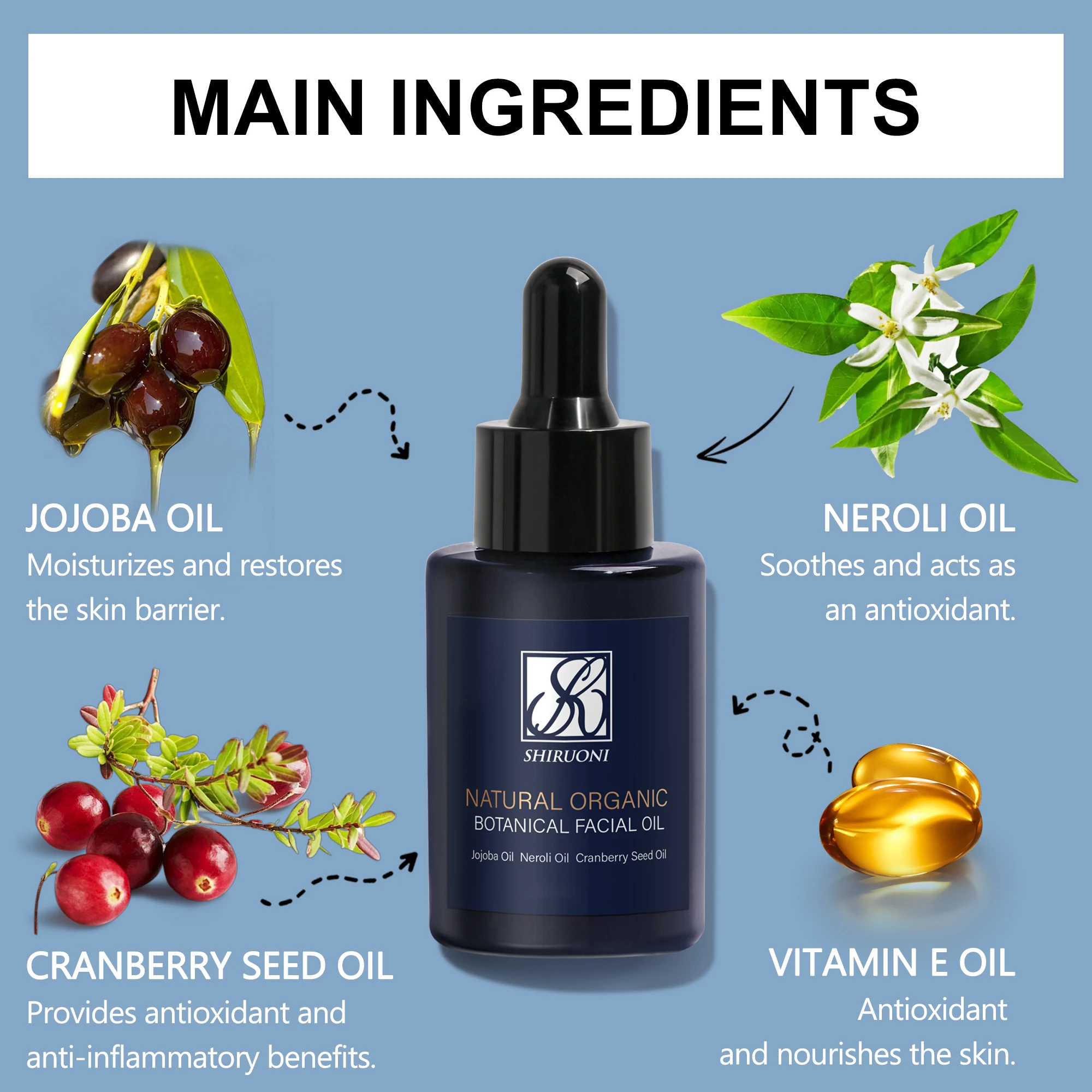 Organic Botanical Oil for Facial Skin Pore Shrinking Anti-Wrinkle Whitening Revitalizing Vitamin E Oil Face Nose Vegan