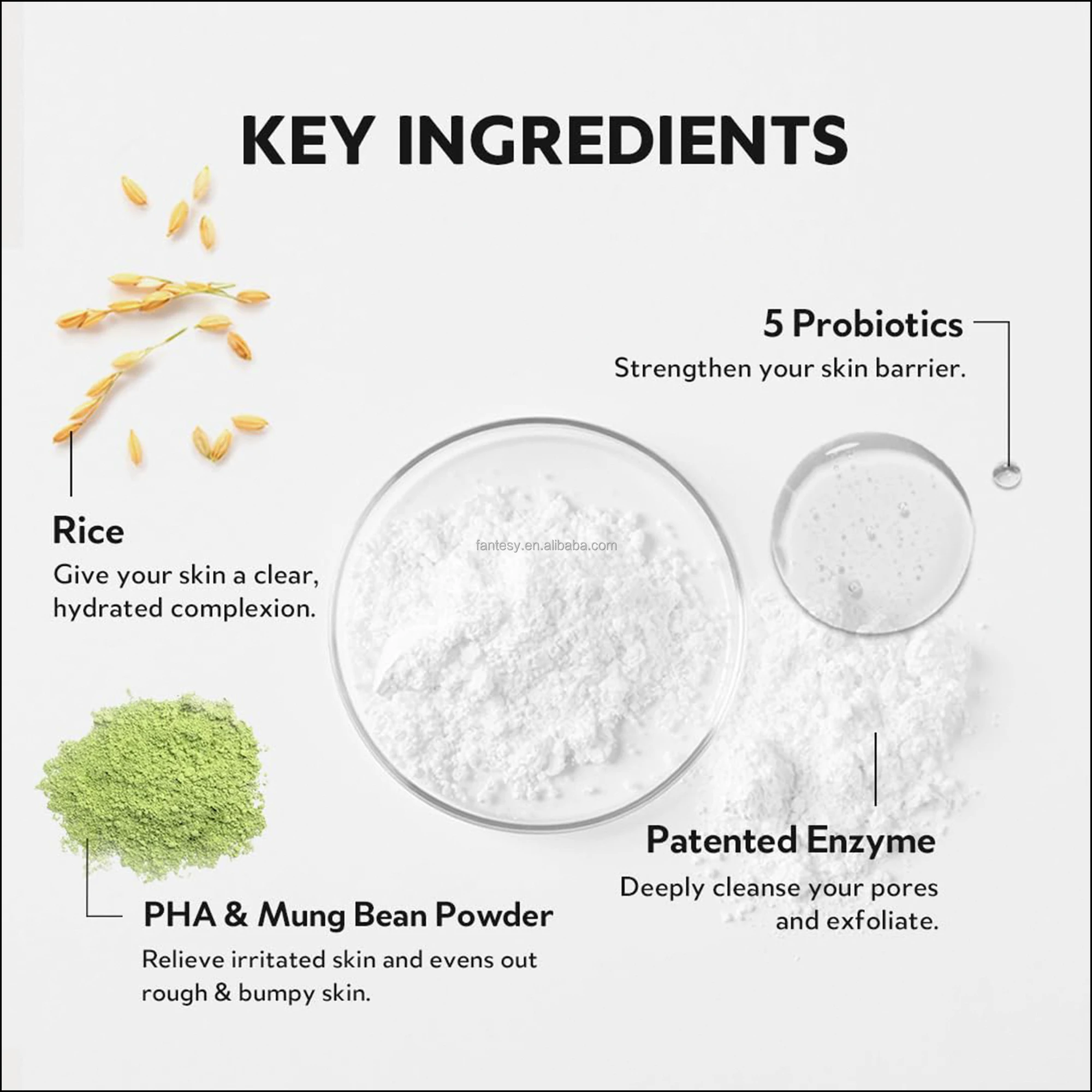 Most Popular Cleanser Powder Boost Enzyme Rice Mung Bean Powder Patented Enzyme Gently Exfoliate Deep Cleansing Powder