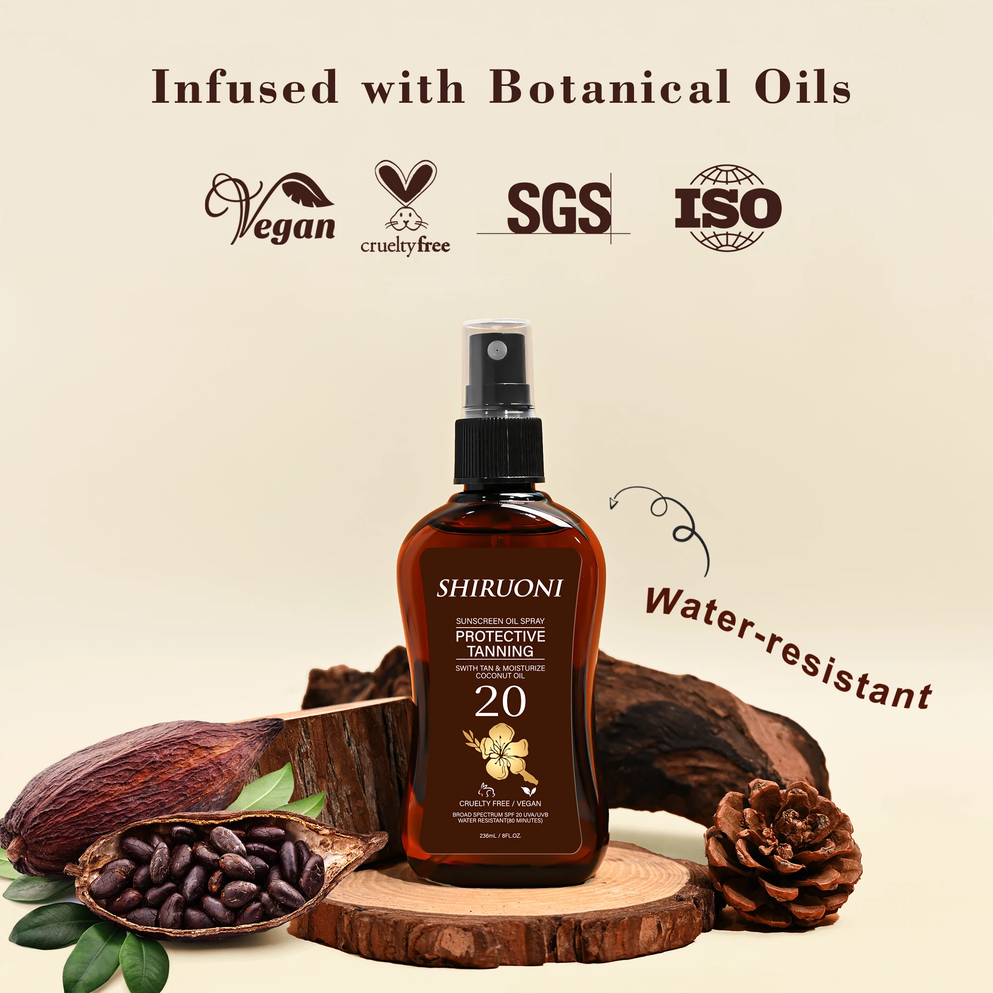 Private Label Organic Vegan Coconut Oil Gel Face & Body Sunscreen with Instant Sun Glow for Tanning Spray