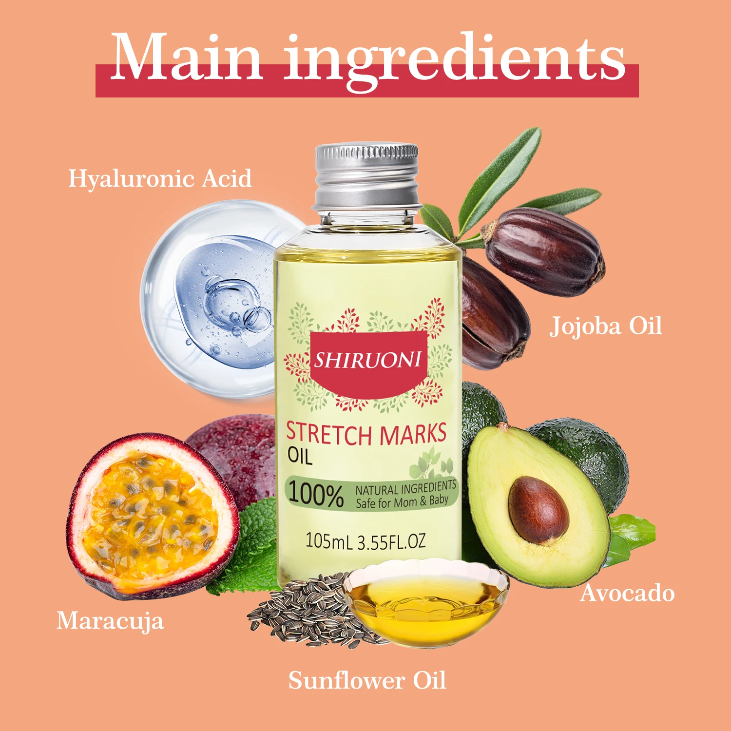OEM Stretch Mask Oil Soothes Discomfort Improves Skin Elasticity Maracuja Avocado Sunflower Jojoba Oil Body Stretch Mask Oil