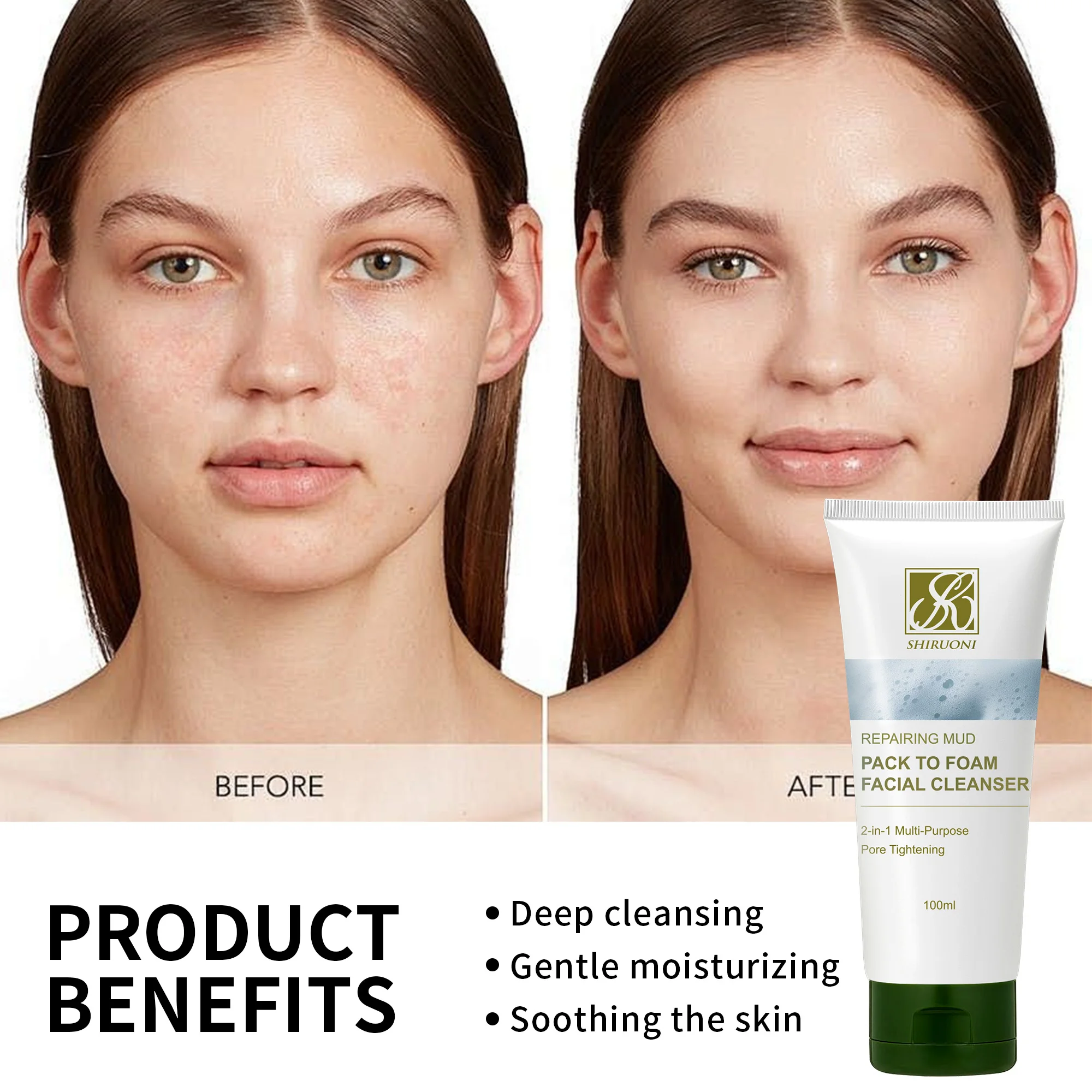 ODMOEM Free Sample Repairing Boryeong Mud with Eucalyptus Leaf Oil Deep Cleansing Multi-Purpose Pore Tightening Facial Cleanser